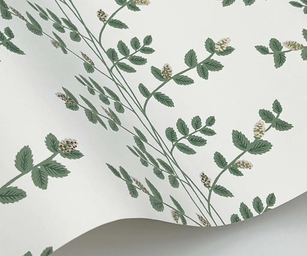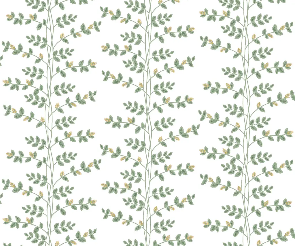 Climbing Vines is a design of delicate leaves growing in a botanical take on a vertical stripe, dotted with little white flowers. This wallpaper is screen printed and comes in 27 inch rolls with a 24.25 inch repeat. Due to the printing process, there may be color variations in different print runs. We suggest purchasing all wallpaper needed for a project at one time for the best color consistency. Unopened rolls can be returned.