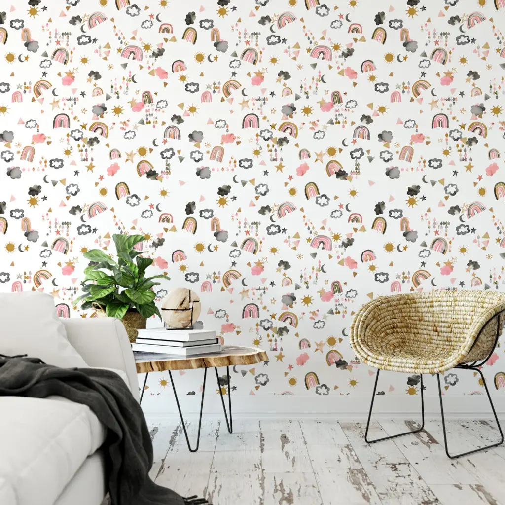 Aimée's original signature Clouds pattern is a graphic, modern choice for your child's room, playroom or nursery. The Clouds faces come as separate, permanent wall stickers for you to place where you please. One face sticker sheet (multiple faces) is provided per three rolls ordered if requested.Samples available for $18 including US shipping. Please message to order.Printing: Digital pigment print (minimum order of 4 rolls).Material: FSC-certified paper. Trimming: This product may come pre-trimmed or untrimmed. Packaging: May be shipped as double rolls, or as a combination of double and single rolls. Single roll: 27 inches × 5 yards (68.8 cm × 4.5 meters) Sample: 8 × 10 inches (20.3 × 25.4 cm)Design Repeat: 25 inches (63.5 cm) Design Match: StraightSize note: Since this pattern is a half-drop, the pattern repeats on the wall every 54 inches (137.2 cm) in width, by 36 inches (91.4 cm) in height.Main Element Size: Starry Cloud measures 8.25 inches (21 cm) tall.Made in the USA. Ships worldwide.Commercial grade options available; please contact us for more information.