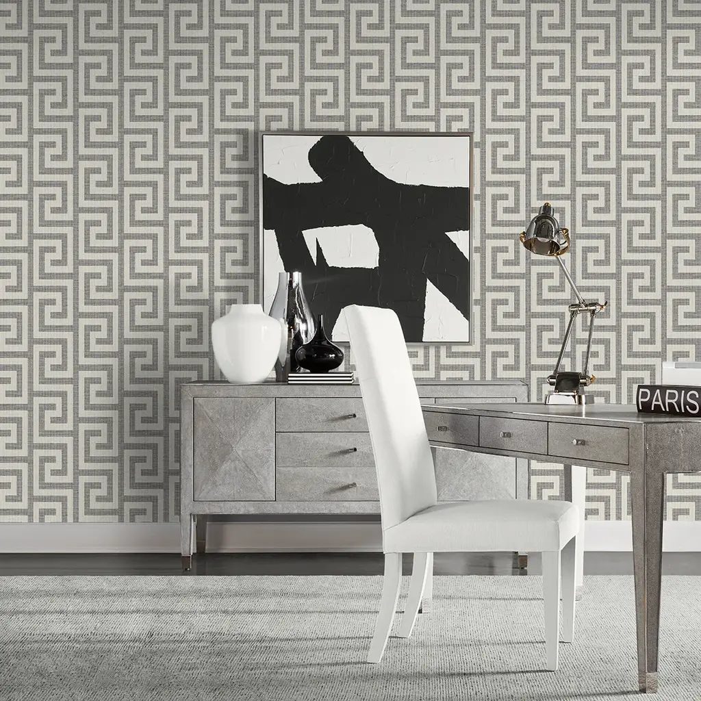 Coastal Haven Luna Retreat Greek Key Wallpaper