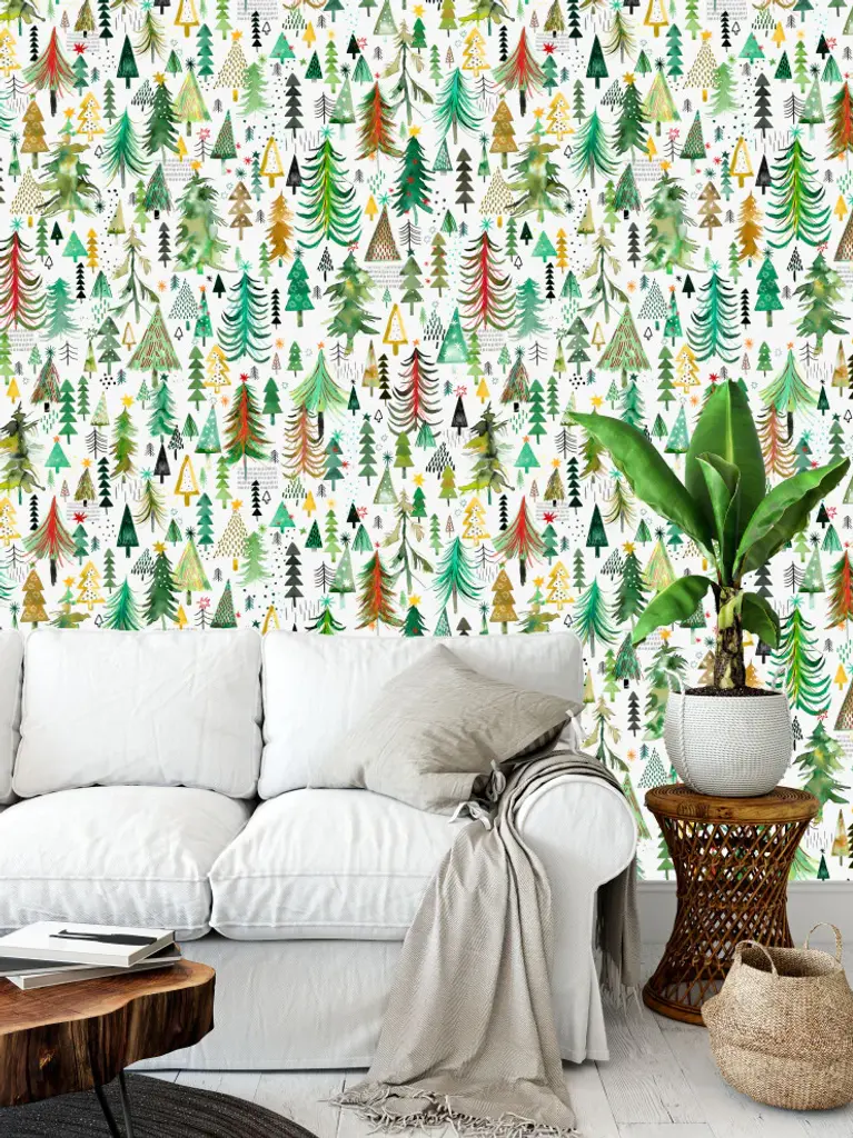 Colorful Christmas Trees Wallpaper, 24"x144"