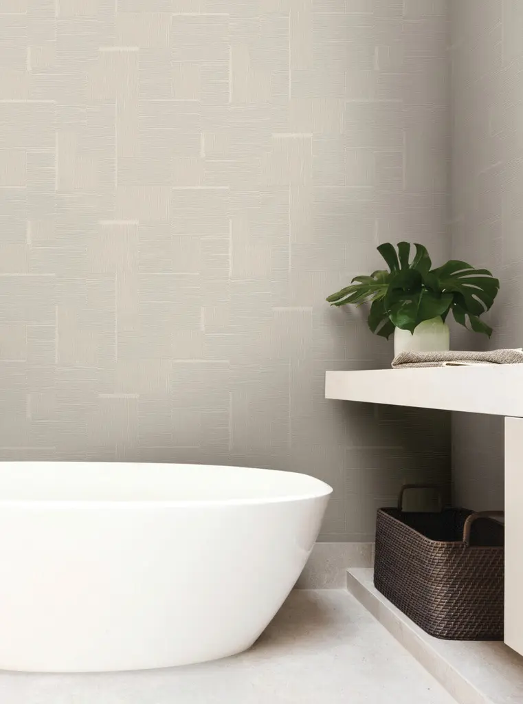Furrows provide a fine line of deeply etched metallic geometric block to provide textural Contour with hints of glamour, shown in chamois beige.From the New Origins Collection: The modern aesthetic of natural form.These nature-inspired patterns bring fluidity and the beauty of inherent irregularities to the foreground of the new geometric style. Organic shape and motion become a gallery of sculptural geometry when refined to a core simplicity of line and texture. Material: Vinyl on Non-woven Features: Unpasted -Scrubbable - Strippable Pattern Match: Straight Pattern Repeat: 20.8" Roll Dimensions: Sold as in a minimum of 2 single rolls, which are physically packaged and delivered as 1 double roll covering approximately 57 square feet (20.9 inches wide x 32.8 feet long) of wall area. Created to cover the diversity and overarching themes which drive the home decor industry, the York Wallpaper brand collections create an umbrella of distinctive and popular design options for walls inspired by social, trend and fashion influences.Please note: Burke Decor does not accept wallpaper returns at this time. Why? Wallpaper is produced in batches (similar to tile) and due to dye-lot variations that occur based on when the rolls are produced, we are unable to accept returns. We accept and offer free shipping on all wallpaper exchanges for all wallpaper that has remained unopened.