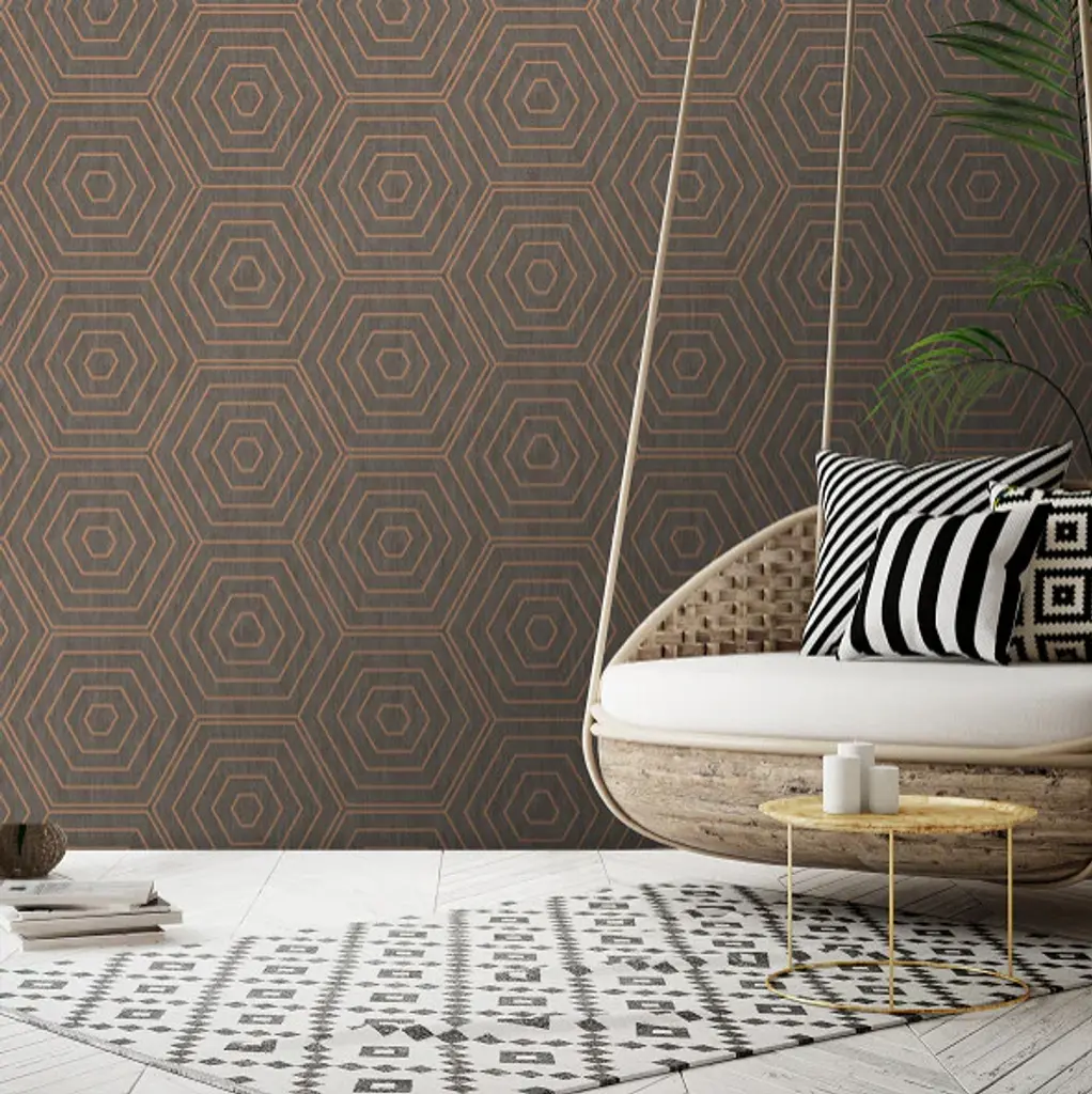 The SK Filson Aztec Hexagons Wallpaper is a great way to introduce your walls to pattern this season. This stunning wallpaper is part of the Famo Wallpaper Collection and is sure to make a welcome addition to any room. The wallpaper features a modern foil metallic hexagonal design for a stylish look and is brought to life in a rich colour scheme.Easily strip-ableMatch Type is OfsetDesign Repeat is 20.86 Inches