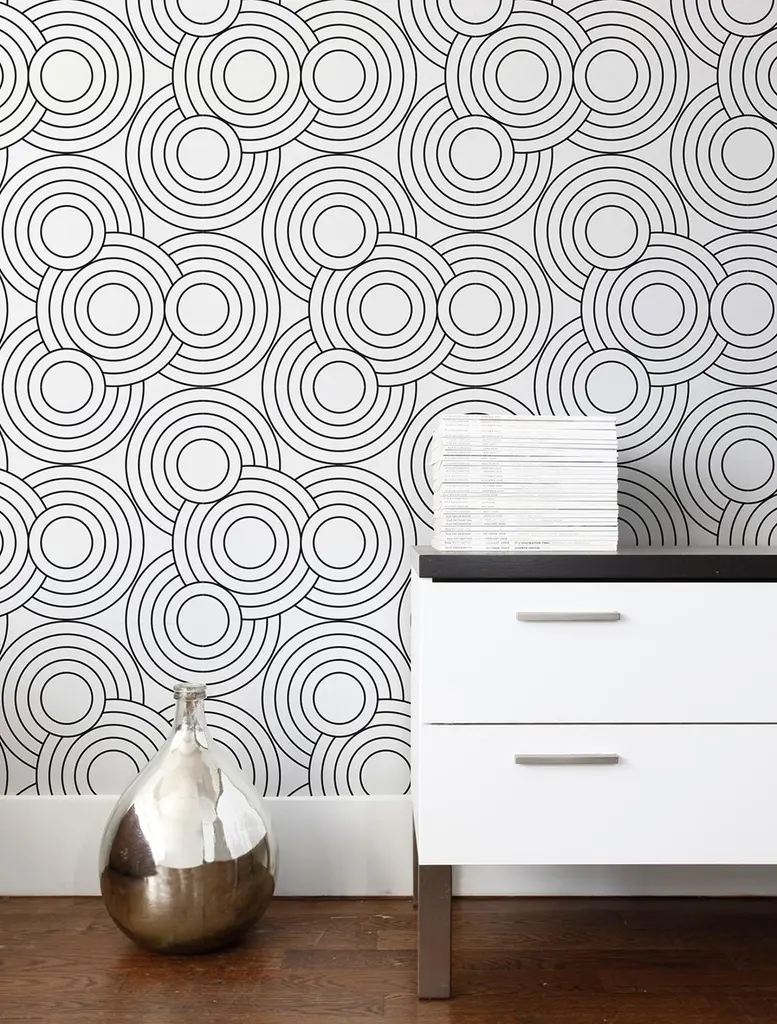 Our classic geometric concentric circles pattern. Samples are available for $18 including US shipping, please message us to purchase.Printing: Digital pigment print (minimum order of 4 rolls), or screen-printed by hand (minimum order and setup fees apply).Material: FSC-certified paper.Trimming: This product may come pre-trimmed or untrimmed.Packaging: May be shipped as double rolls, or as a combination of double and single rolls.Single roll: 27 inches× 5 yards (68.8 cm× 4.5 meters)Sheet: 27× 36 inches (68.8× 91.4 cm)Sample:~ 8× 10 inches (20.3× 25.4 cm)Design Repeat: 46.29 inches (117.6 cm). Design Match: StraightSize note: Circle Size measures 15.5 inches (39.4 cm). Made in the USA. Ships worldwide.Commercial grade options available; please contact us for more information.