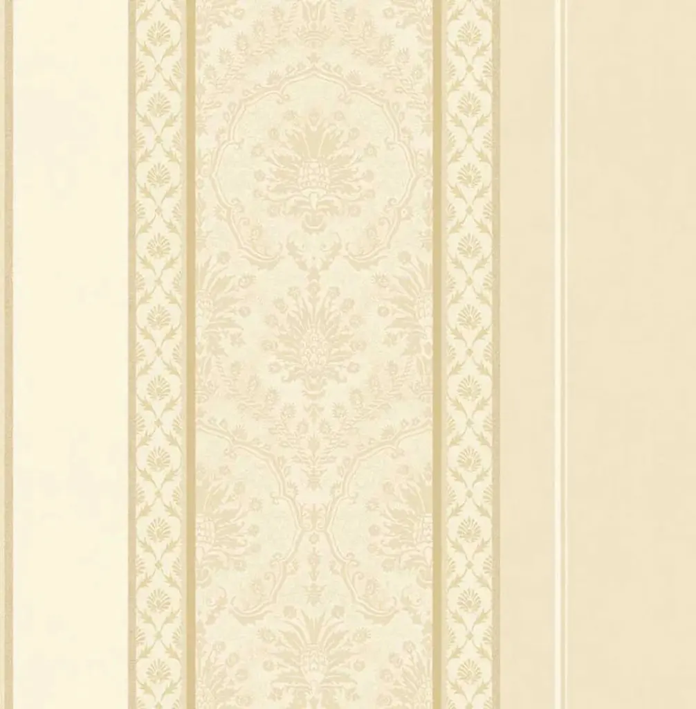 Our design mingles traditional heritage patterns with minimalist stripes, toeing the line between classic and unconventional. A metallic blend of gold, vanilla and cream comprise this modern iteration of period charm.The Providence Collection embraces soft curved lines and creamy naturals punctuated by crisp accents, celebrating the amalgamation of color and pattern. Elevated, warm vibes and delicate details create an idyllic cocoon. Material: Paper Match Type: Half Drop Pattern Repeat: 21" Roll Dimensions: 20.5 in. Wide x 32.9 ft. Long (covers approx. 56 sq feet). Mayflower is inspired by nature, history, art, and the delightfully unexpected. Their wallcoverings are eco-sustainable, kid friendly, and authentic one-of-a-kind creations. Their unpasted wallpapers are 100% paper and are Fire A rated, safe for sensitive environments and commercial areas. Mayflower specializes in classic damask, victorian, and arts-and-crafts patterns, as well as bright inks, modern metallics, and peelable wallpaper for renters, accent walls, ceilings, and everywhere in between.Please note: Burke Decor does not accept wallpaper returns at this time. Why? Wallpaper is produced in batches (similar to tile) and due to dye-lot variations that occur based on when the rolls are produced, we are unable to accept returns. We accept and offer free shipping on all wallpaper exchanges for all wallpaper that has remained unopened.