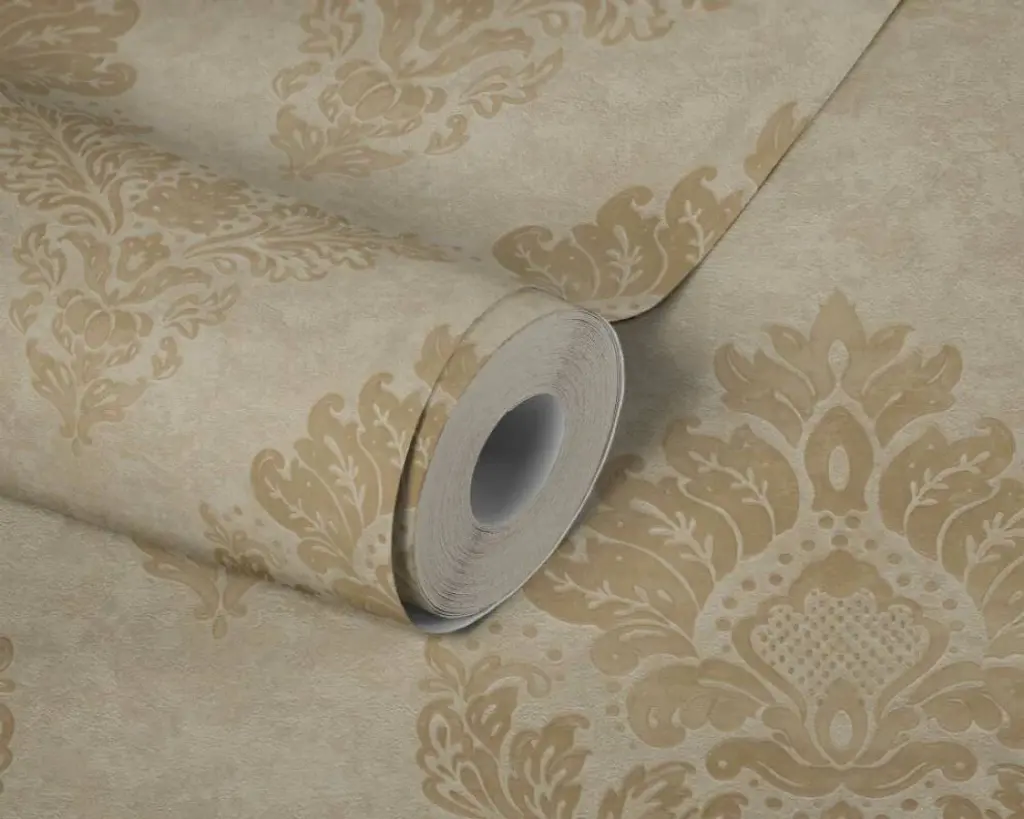 Damask Baroque Classical Textured Wallpaper 379013, Beige Brown Cream, 1 Roll