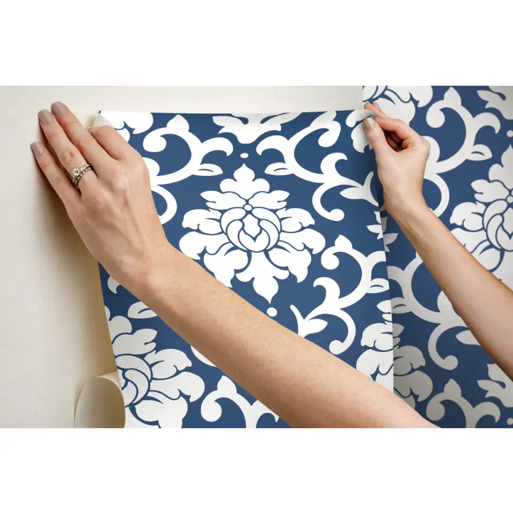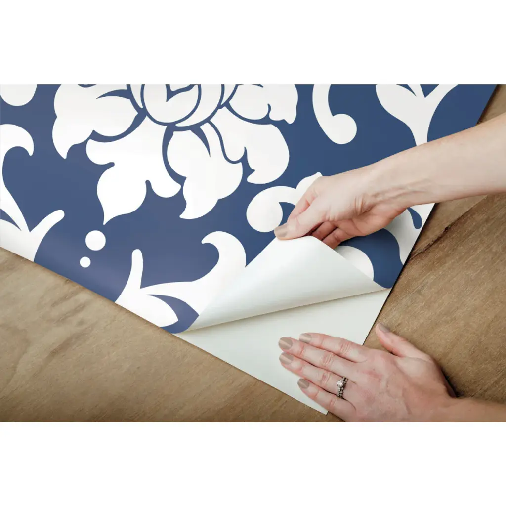 There is nothing like the traditional elegance of damask wallpaper- but when this motif is on peel and stick wallpaper in royal blue, the choice is easy! Peel, stick & done: that''s all it takes to introduce this timelessly elegant design to your space. Roll size - 20.5 inches x 16.5 feet. Design has a straight match with a 20.5 inch repeat. Square foot coverage - 28.18 square feet; Peel and stick to apply no water, no paste, no mess; 100% removable peel and stick wallpaper.; No sticky residue left behind upon removal; Where to Apply - Our wallpaper adheres to any smooth, flat, and clean surface. Walls should be cleaned before use. Our products are not designed for textured walls.; Repositionable, washable, and strippable; Superior strength & properties to regular contact paper (thicker & leaves no sticky residue behind); Perfect for both renters and homeowners; .