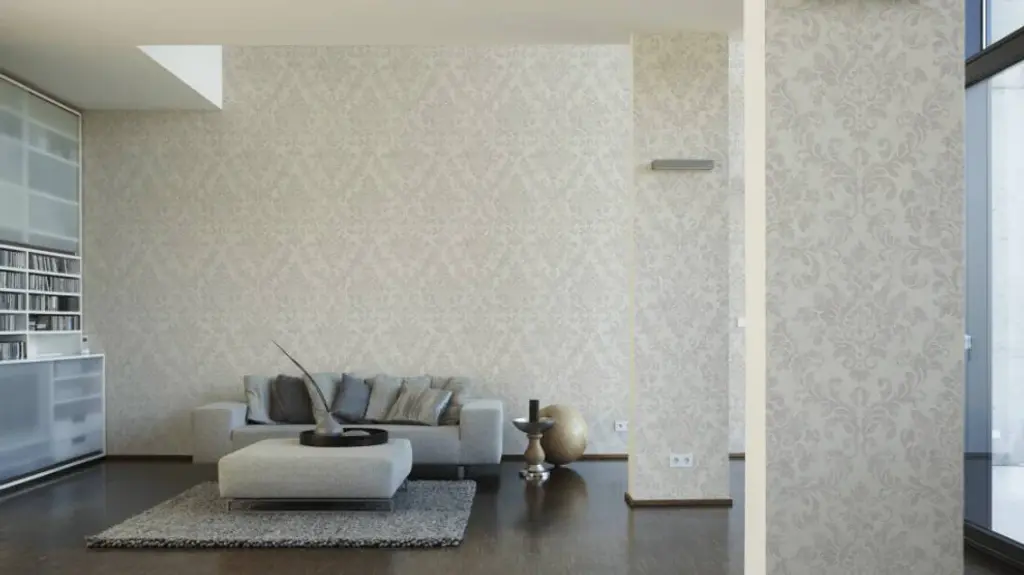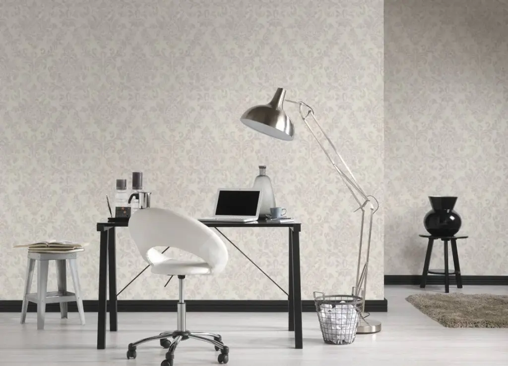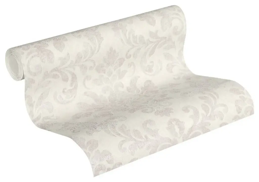 Damask Textured Wallpaper, Ornaments, 374133, White Gray Silver Pink, 1 Roll