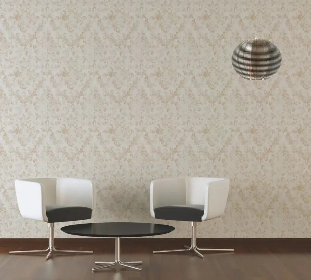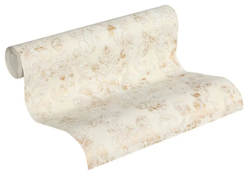 Damask Textured Wallpaper, Ornaments, 374135, Beige Cream Gold, 1 Roll