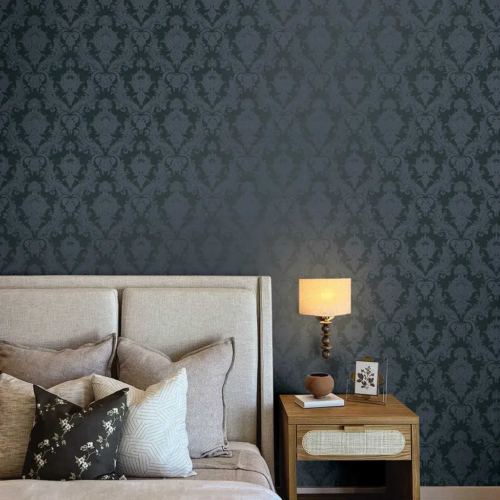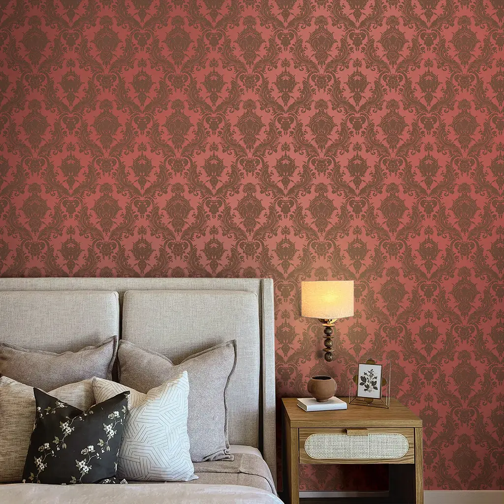 Swatches are available for this wallpaper here . The perfect temporary modern wallpaper solution for high-impact decorating without a long-term commitment, the Damsel Textured Removable Wallpaper from Tempaper elevates your space with ease. An innovative decorating solution that empowers DIY decorators to customize their environments, the self-adhesive backing allows it to be applied and removed easily with no mess. Create an accent wall, spice up the back of an open shelving unit, or do an entire room in this gorgeous damask pattern.Highlights Samples