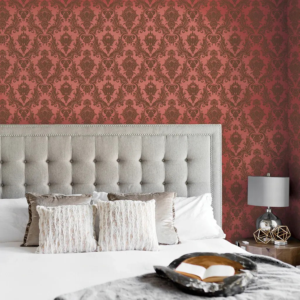 Swatches are available for this wallpaper here . The perfect temporary modern wallpaper solution for high-impact decorating without a long-term commitment, the Damsel Textured Removable Wallpaper from Tempaper elevates your space with ease. An innovative decorating solution that empowers DIY decorators to customize their environments, the self-adhesive backing allows it to be applied and removed easily with no mess. Create an accent wall, spice up the back of an open shelving unit, or do an entire room in this gorgeous damask pattern.Highlights Samples