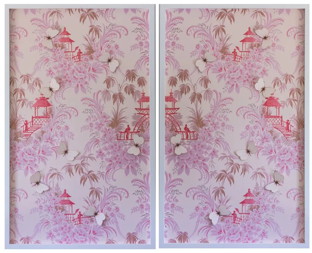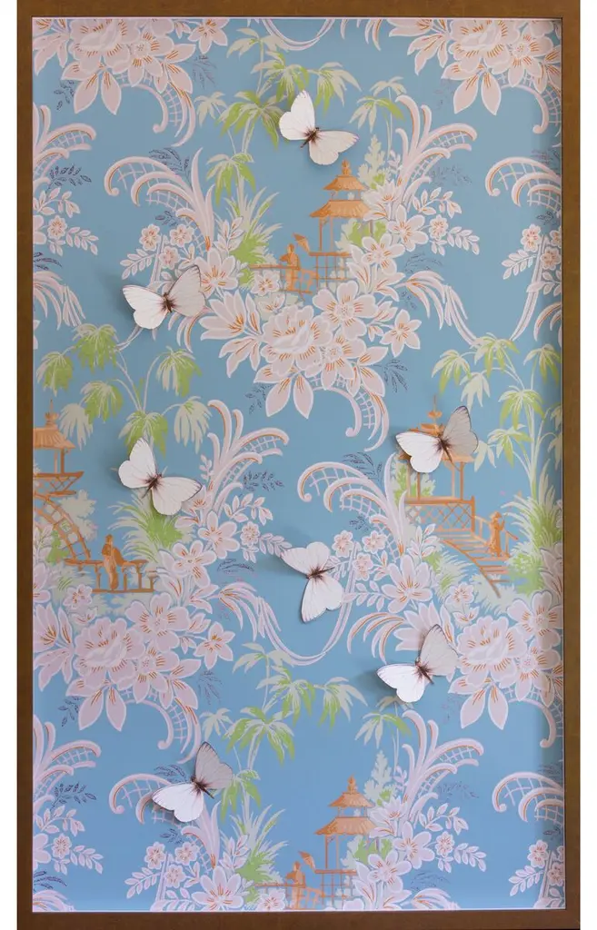 Seen first at One Kings Lane: This limited-edition work from Dawn Wolfe features a vintage-inspired wallpaper pattern printed on cotton rag archival paper. Signed, dated, and numbered by the artist, this piece is displayed under glass in a custom shadowbox frame and arrives ready to hang.