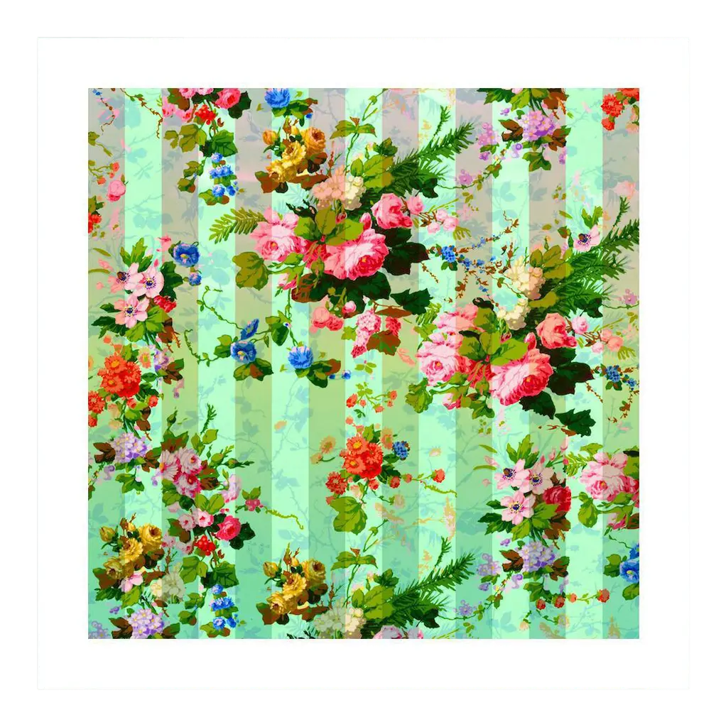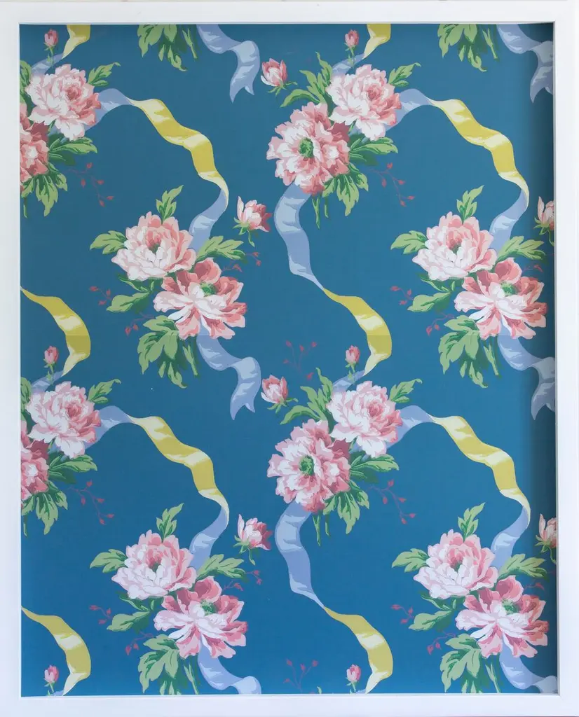 Seen first at One Kings Lane: This limited-edition work from Dawn Wolfe features a vintage-inspired wallpaper pattern printed on cotton rag archival paper. Signed, dated, and numbered by the artist, this piece is displayed under glass in a custom shadowbox frame and arrives ready to hang.