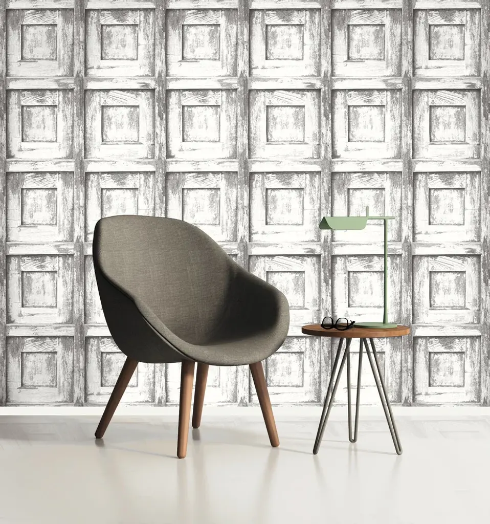 Decoworld 2, Natural Gray, White Wallpaper Roll, Modern Wall Decor Accent