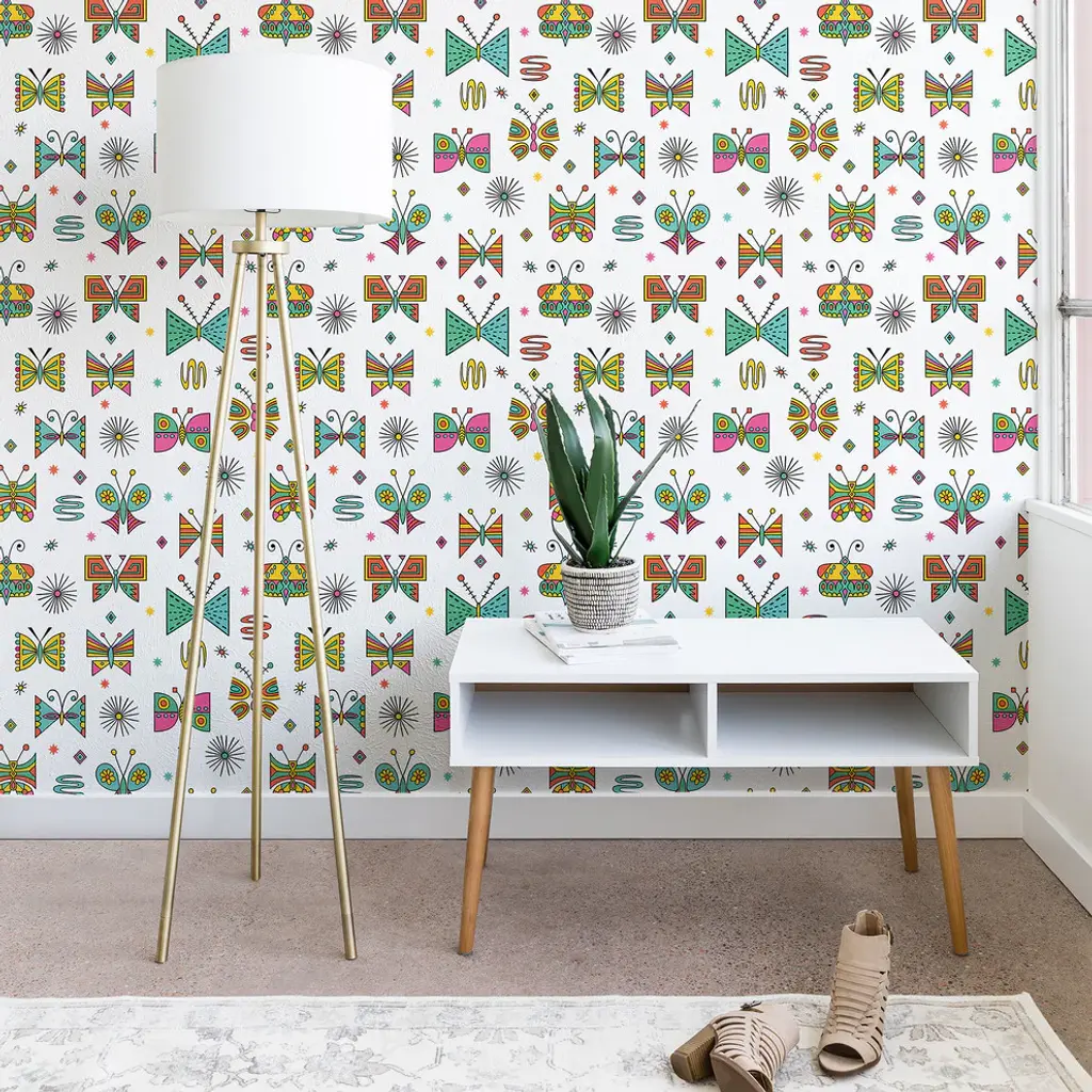 Deny Designs Andi Bird Butterfly Joy Wallpaper, White, 2'x4'