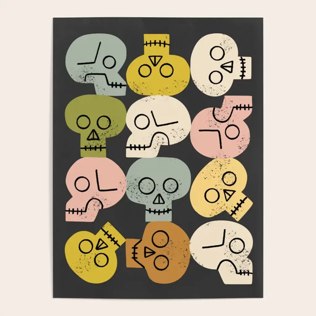 Deny Designs Andi Bird Sugar Skull Fun Aqua Wallpaper, Blue, 2'x8'
