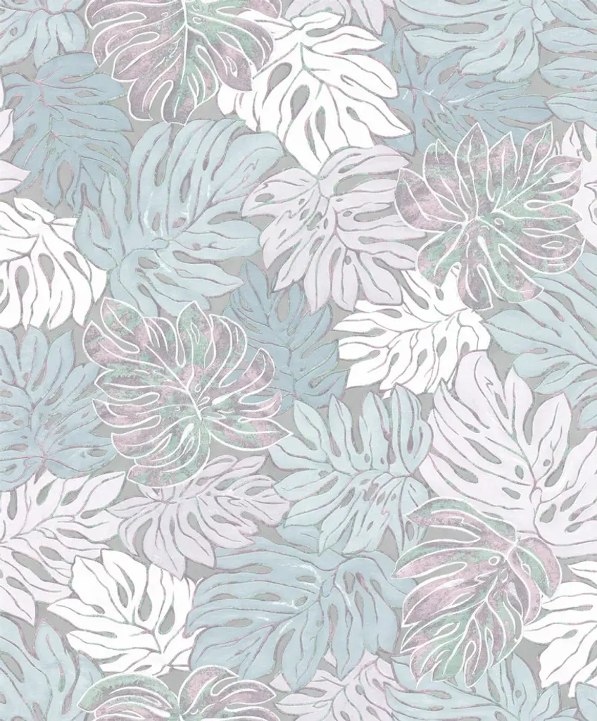 Deny Designs Bianca Green Linocut Monstera Pastel Wallpaper, Green, 2'x8'