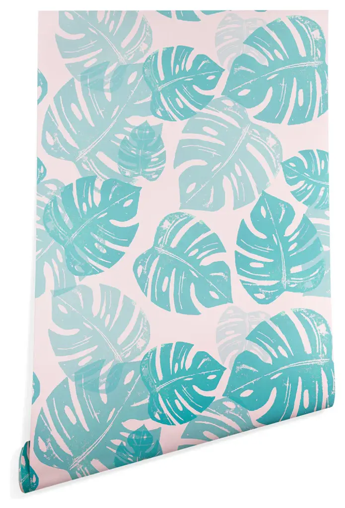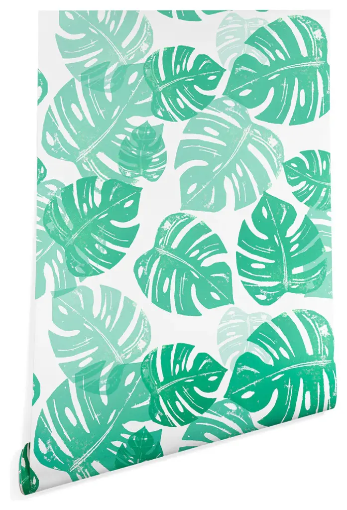 Deny Designs Bianca Green Linocut Monstera Wallpaper, Green, 2'x10'