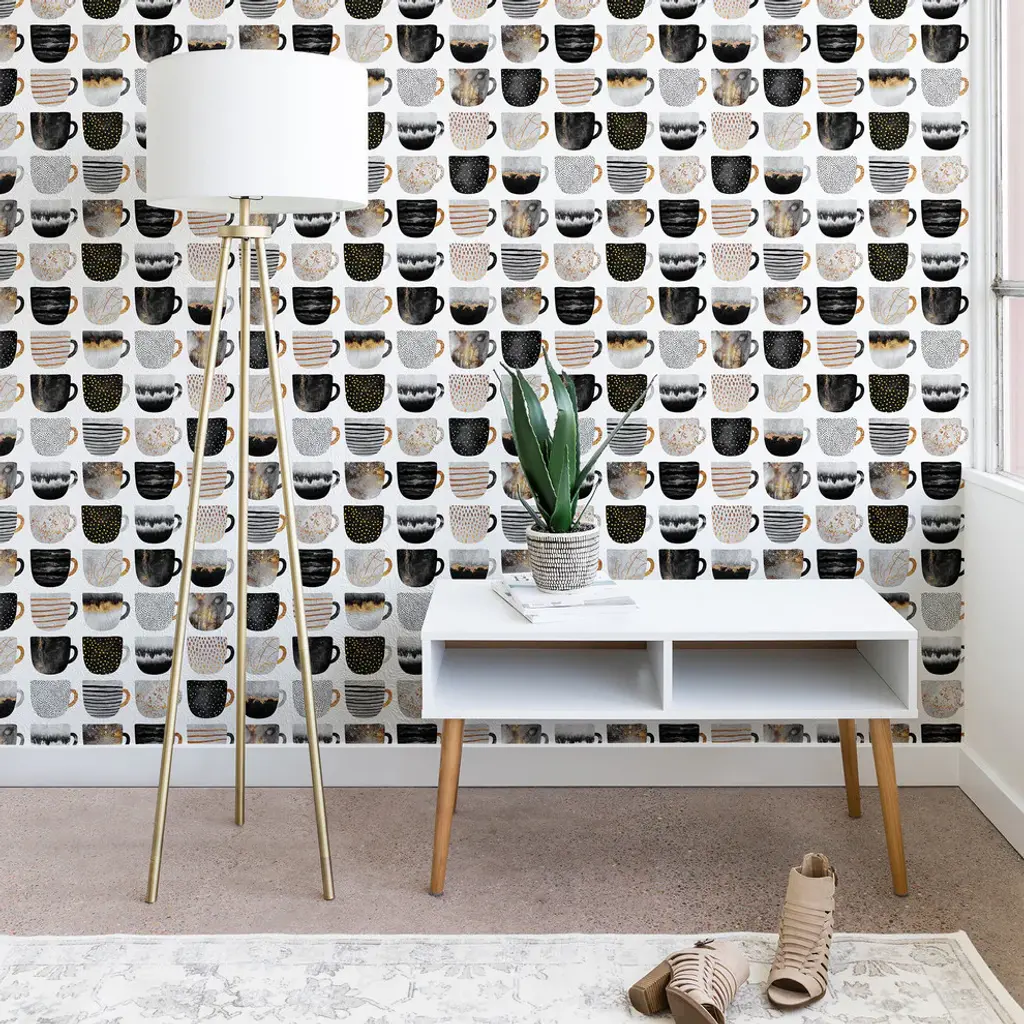 Deny Designs Elisabeth Fredriksson Pretty Coffee Cup Wallpaper, White, 2'x4'