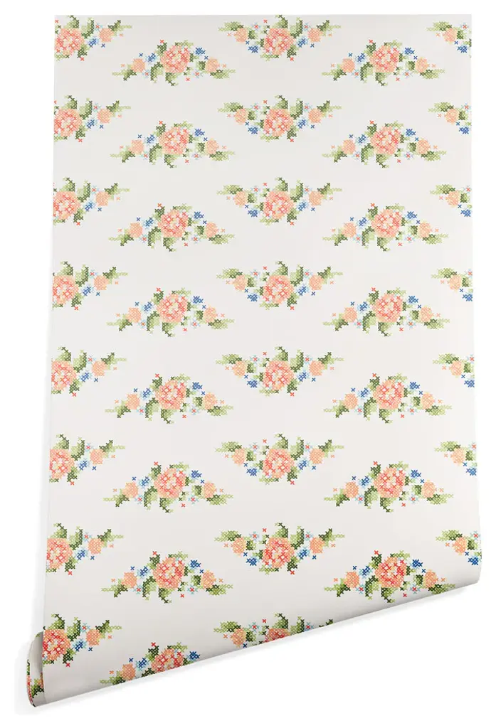 Deny Designs Florent Bodart Keziah Flowers Wallpaper, Beige, 2'x10'