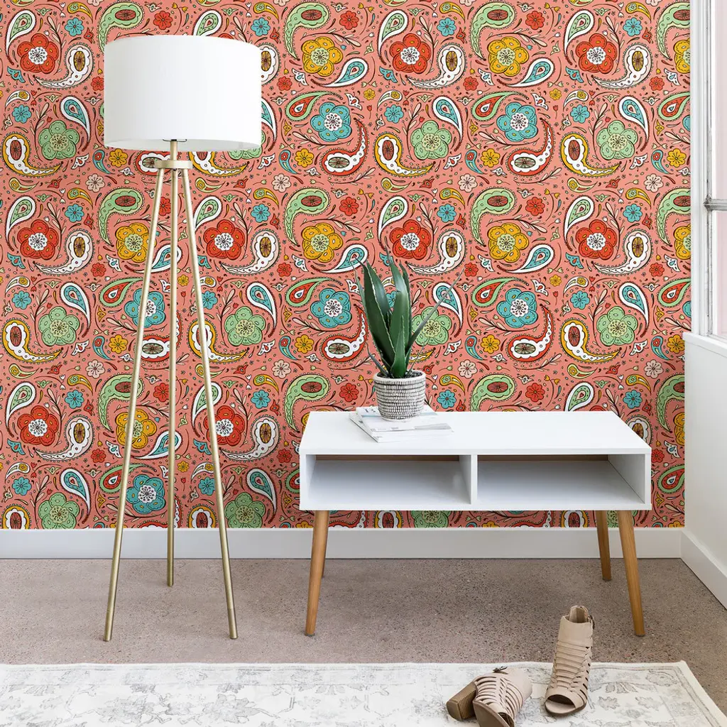 Deny Designs Heather Dutton Adora Paisley Wallpaper, Pink, 2'x4'