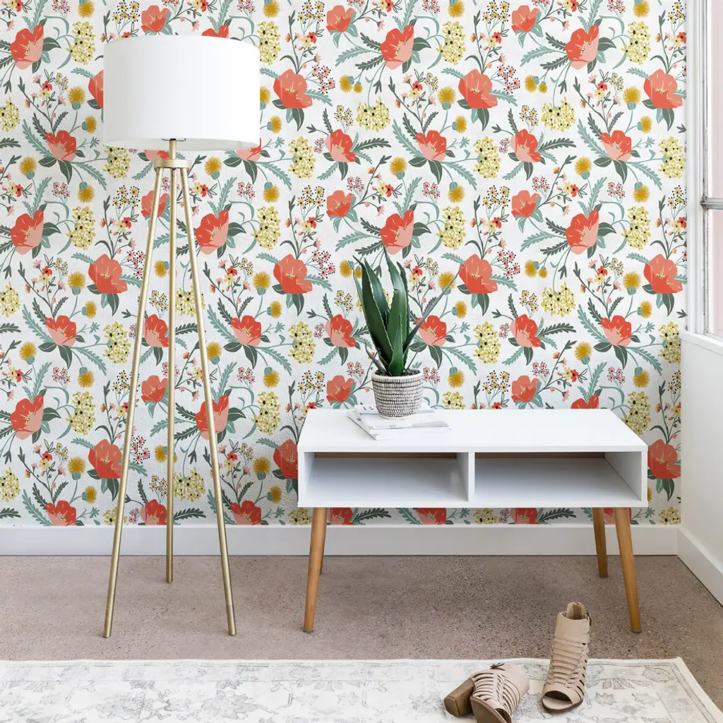 Deny Designs Heather Dutton Poppy Meadow White Wallpaper