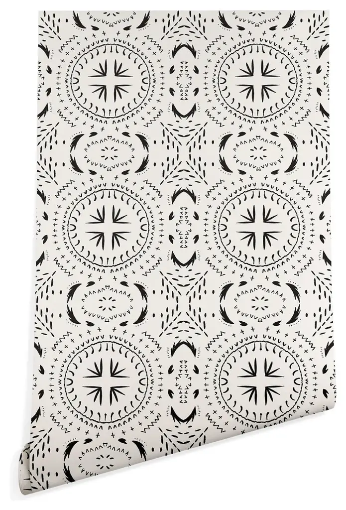 Deny Designs Holli Zollinger Boho Tile Wallpaper, Black, 2'x8'