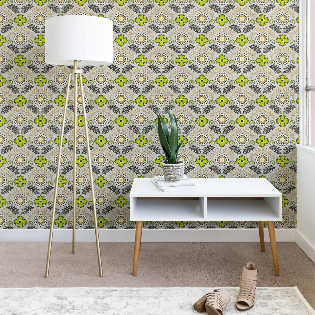 Deny Designs Holli Zollinger Floral Brocade Wallpaper, Beige, 2'x4'
