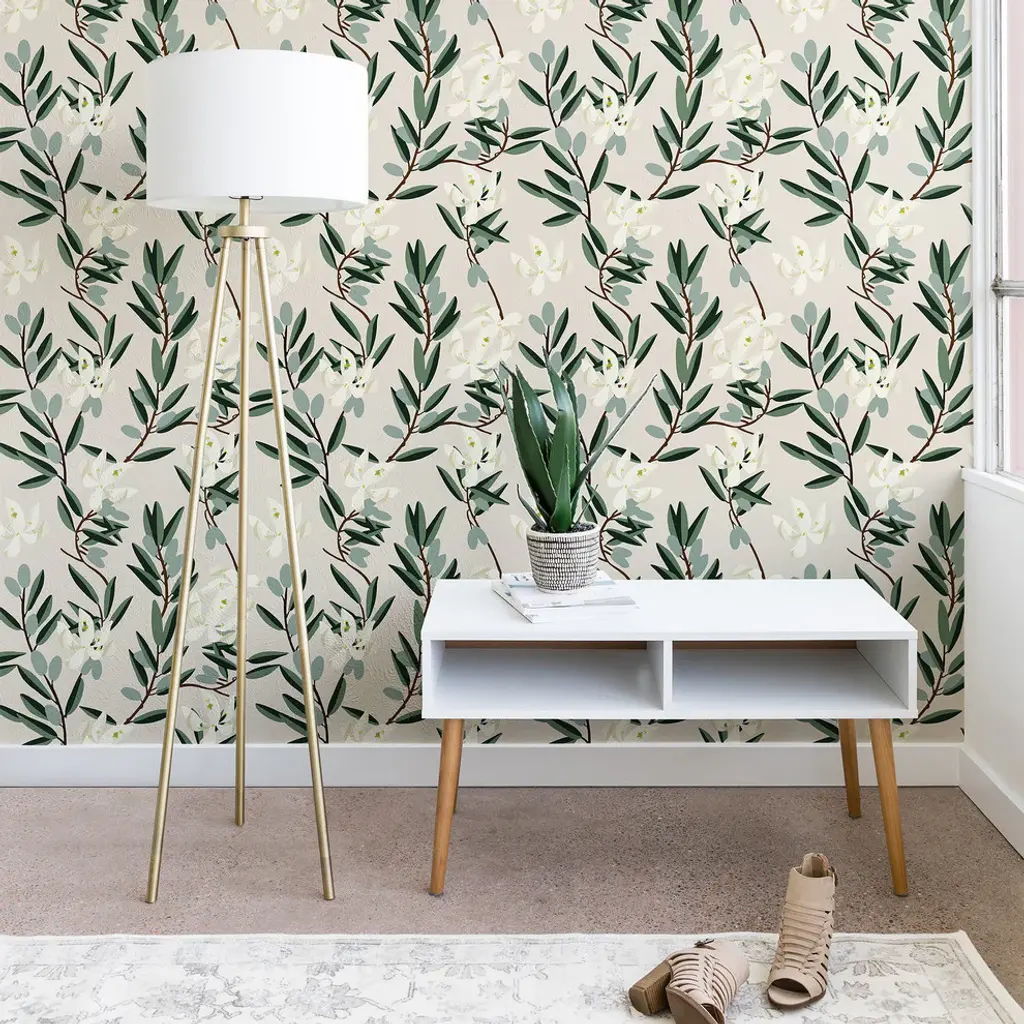 Deny Designs Holli Zollinger Olive Bloom Wallpaper, White, 2'x4'