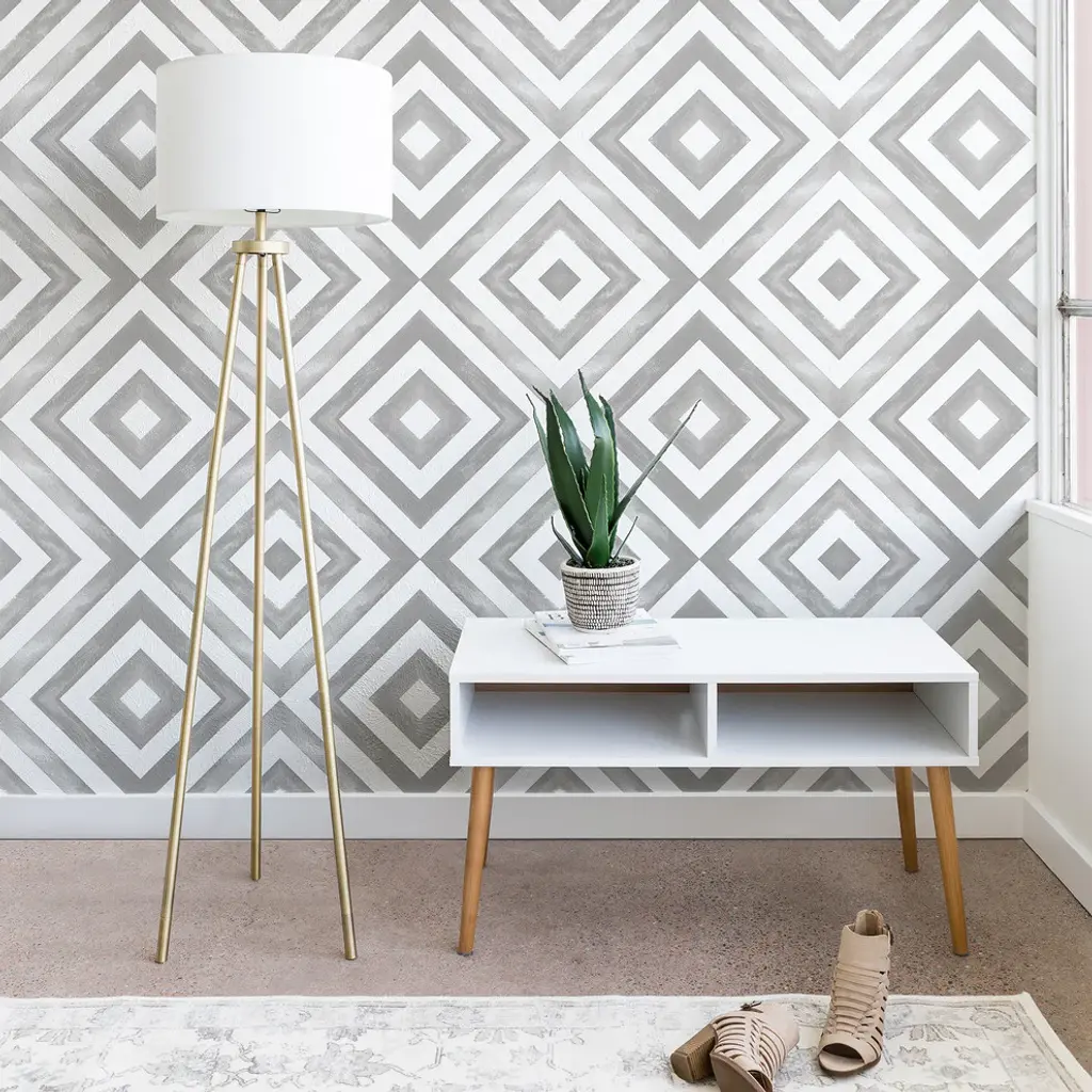 Deny Designs Little Arrow Design Co Diamonds, Gray Wallpaper, Gray, 2'x4'