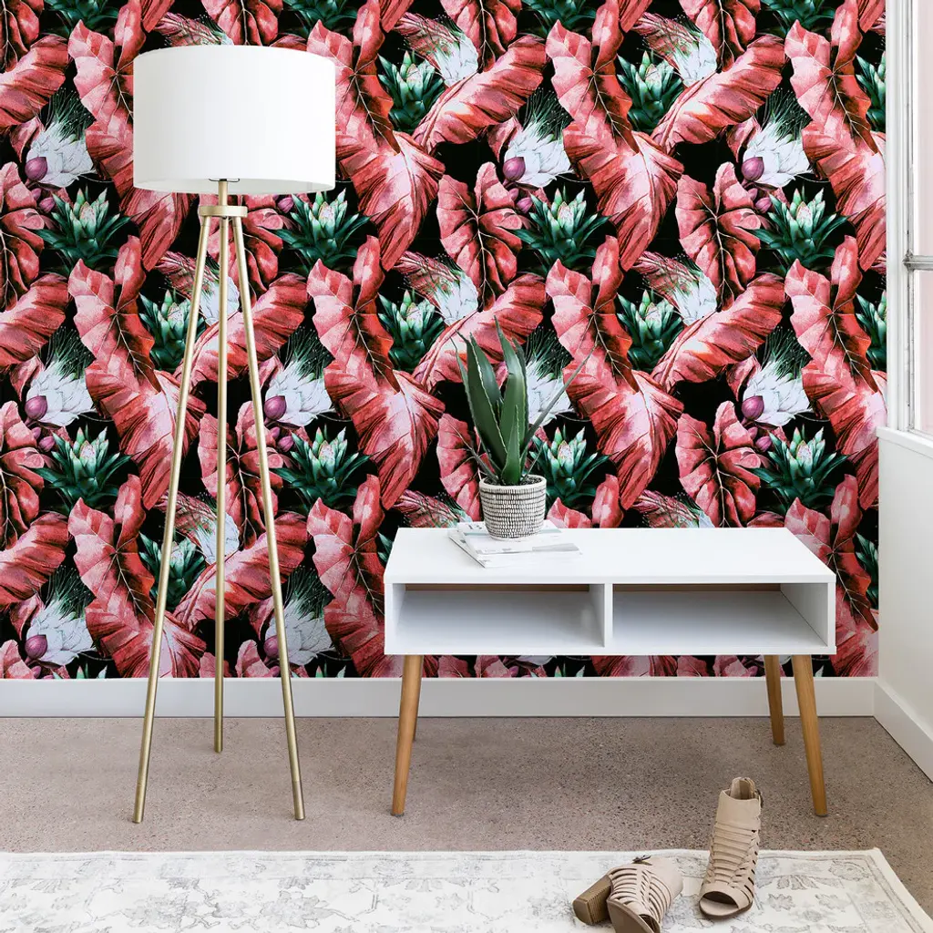 Deny Designs Marta Barragan Camarasa Dark Tropical Wallpaper, Pink, 2'x4'
