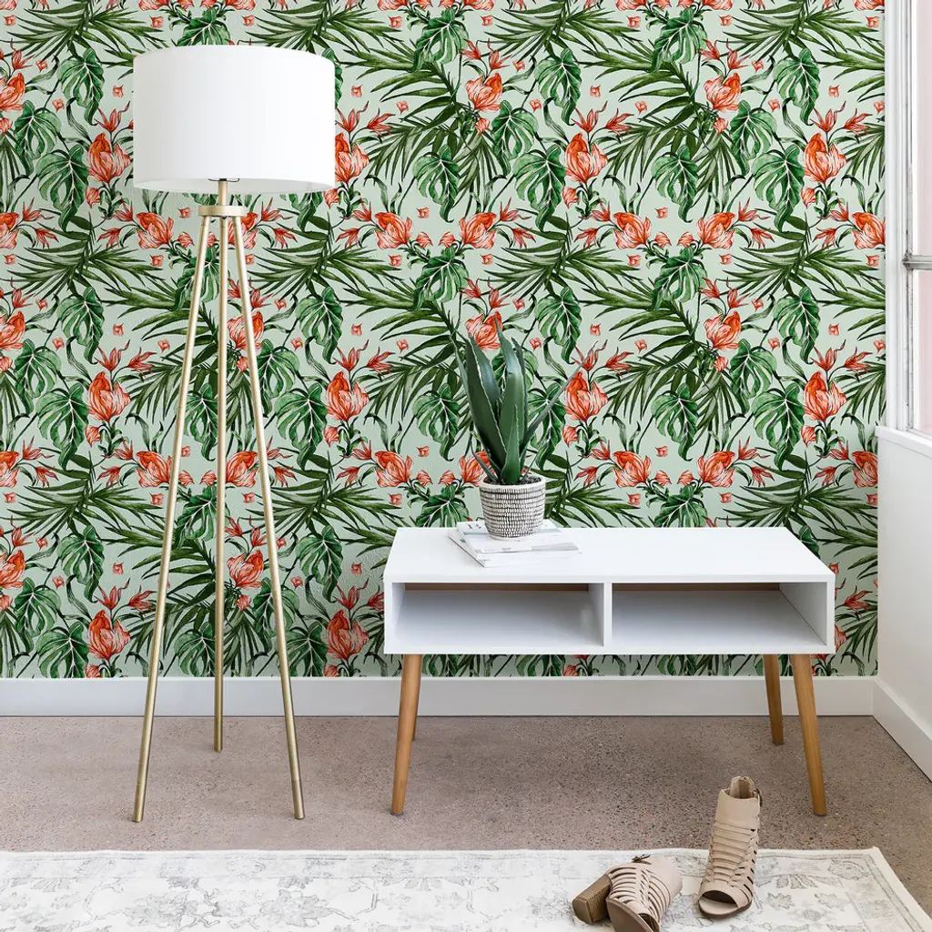 Deny Designs Marta Barragan Camarasa Exotic Flower Wallpaper, Green, 2'x4'