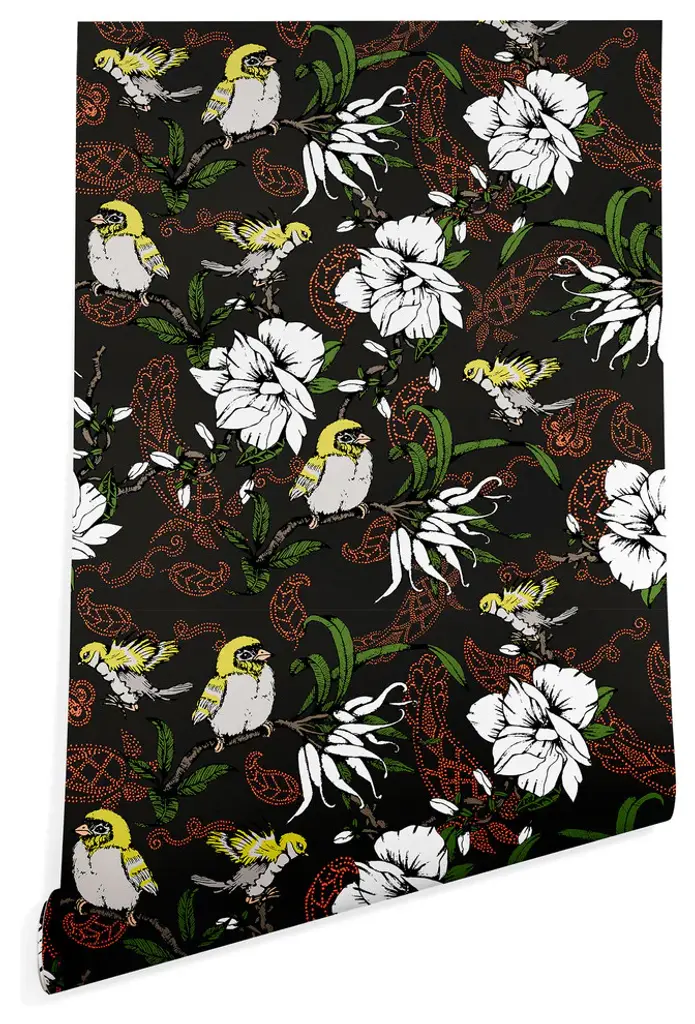 Deny Designs Marta Barragan Camarasa Paisley Garden Wallpaper, Black, 2'x10'