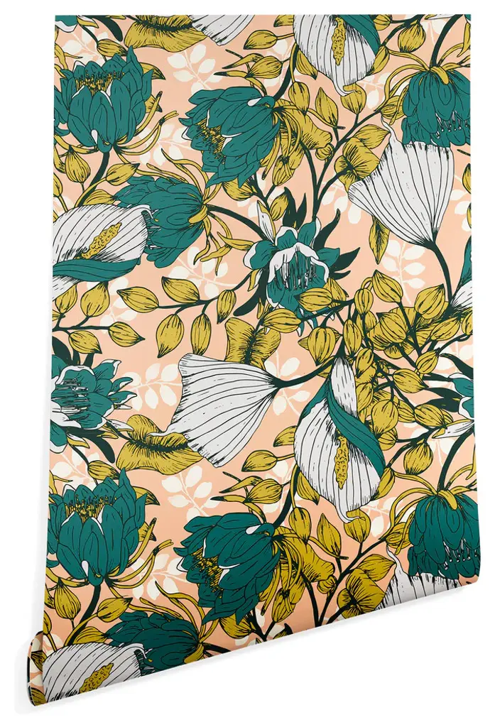 Deny Designs Marta Barragan Camarasa Tropical Bloom Wallpaper, Green, 2'x10'