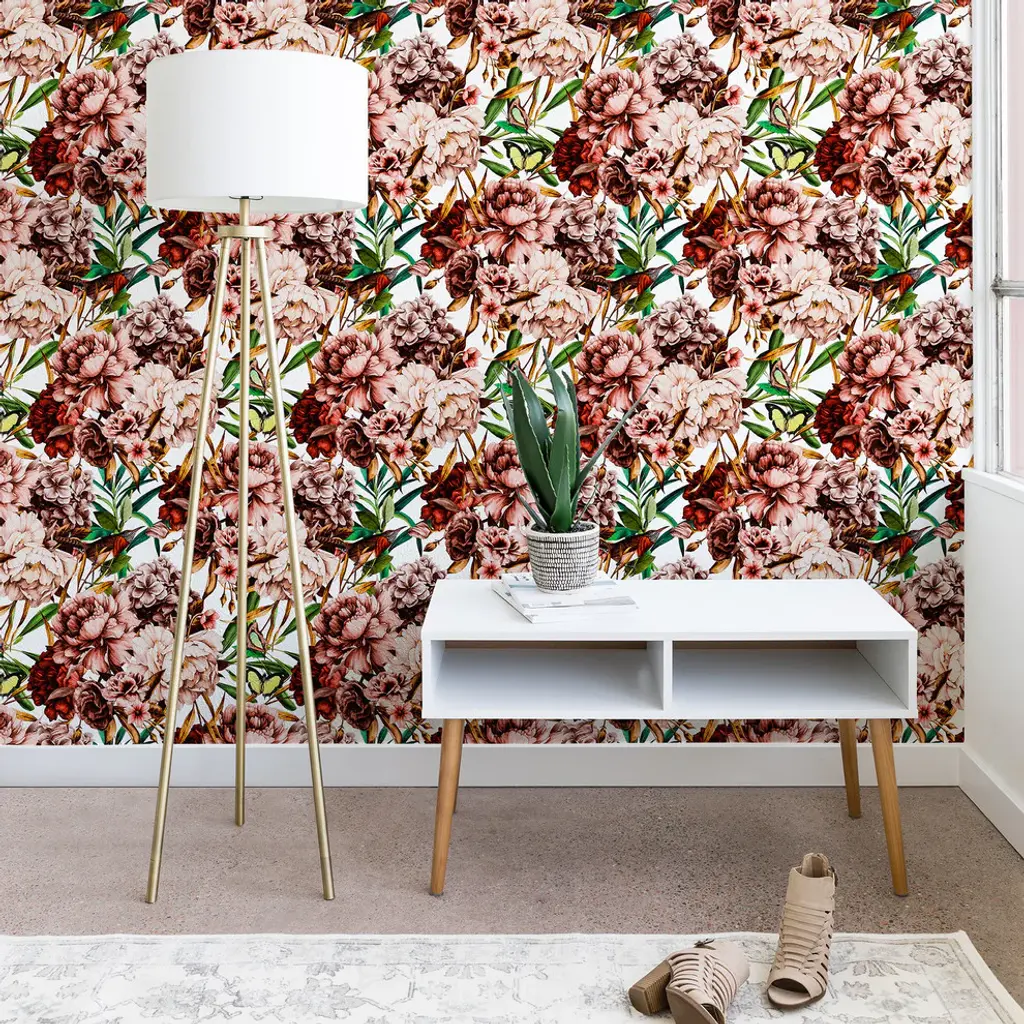 Deny Designs Marta Barragan Camarasa Vintage Flowers Wallpaper, Pink, 2'x4'