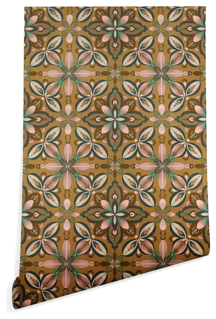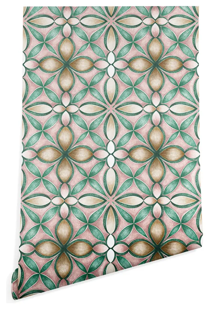 Deny Designs Pimlada Phuapradit Floral Tile Pinkgreen Wallpaper, Pink, 2'x8'