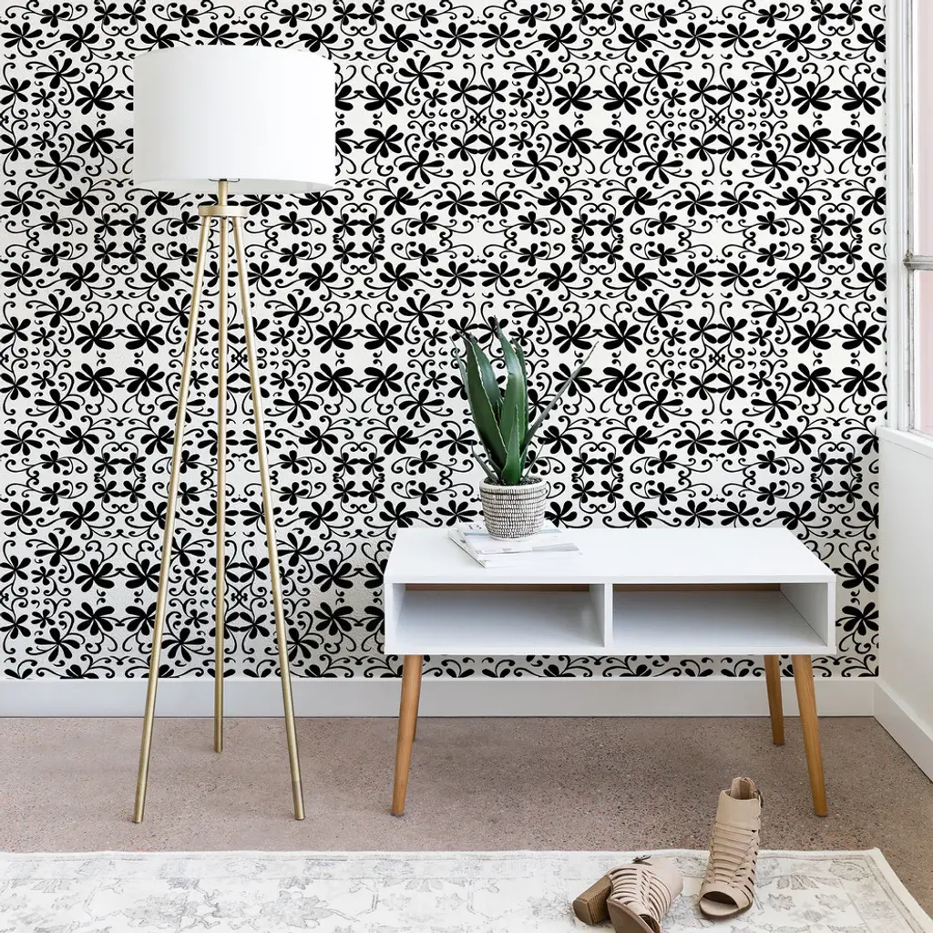 Deny Designs Rosie Brown Black On White Wallpaper, Black, 2'x4'