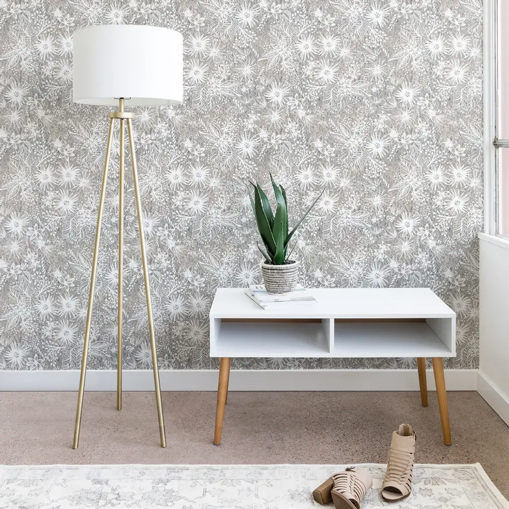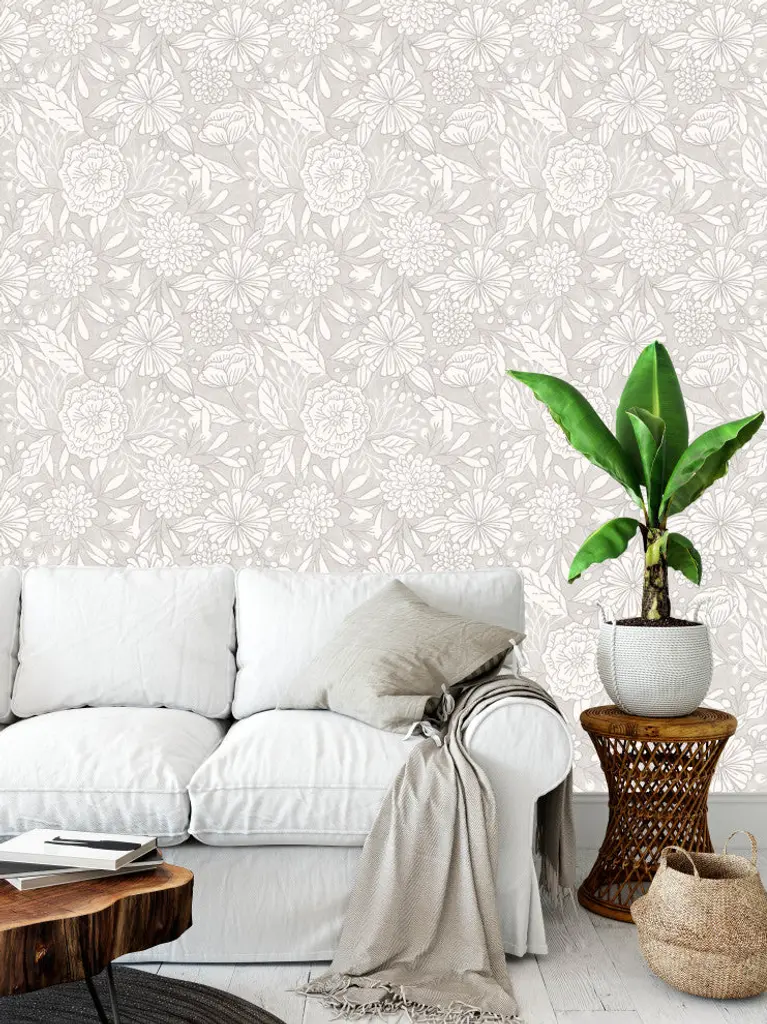 Deny Designs Schatzi Brown Eden Floral Sand Wallpaper, Gray, 2'x4'