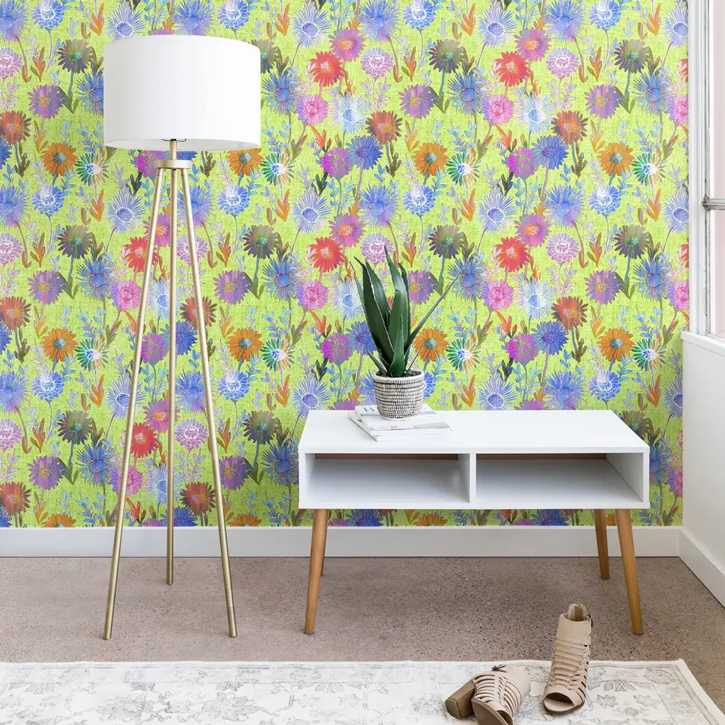 Deny Designs Schatzi Brown Gillian Floral Lime Wallpaper, Green, 2'x4'