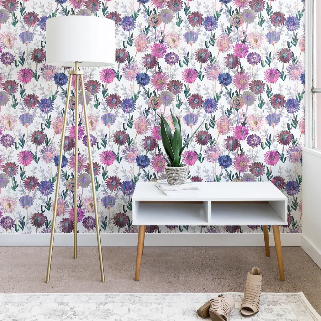 Deny Designs Schatzi Brown Gillian Floral White Wallpaper, Pink, 2'x4'