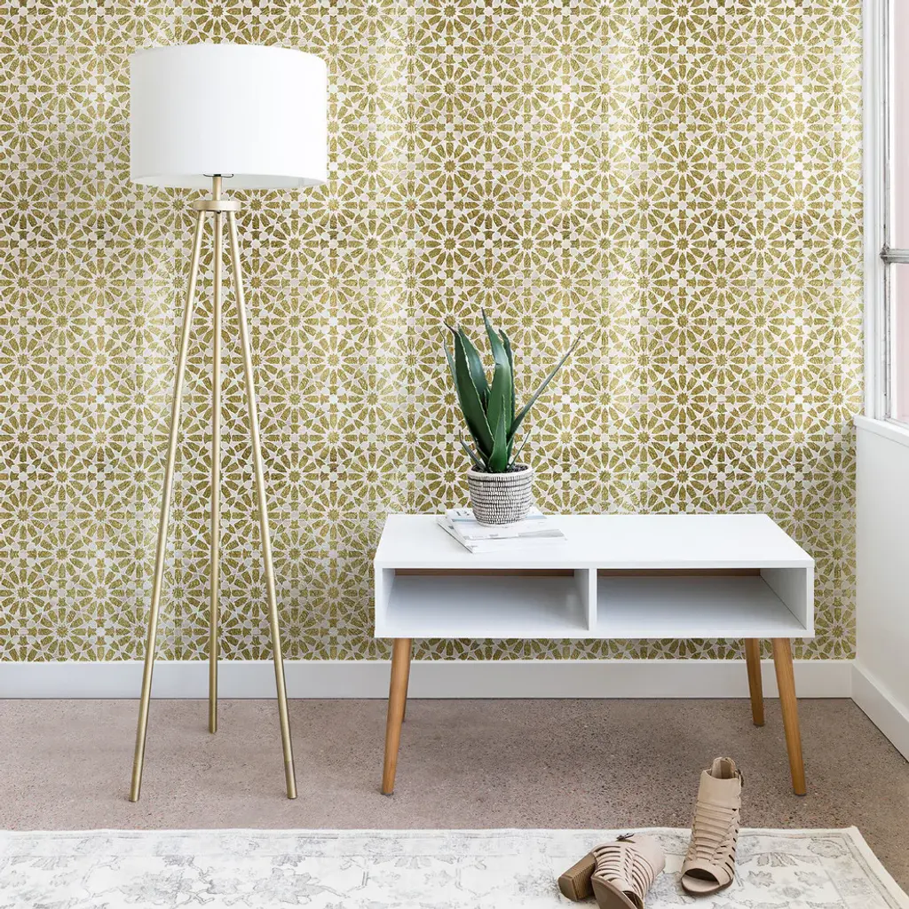Deny Designs Schatzi Brown Hara Tiles Golden Wallpaper, Yellow, 2'x4'