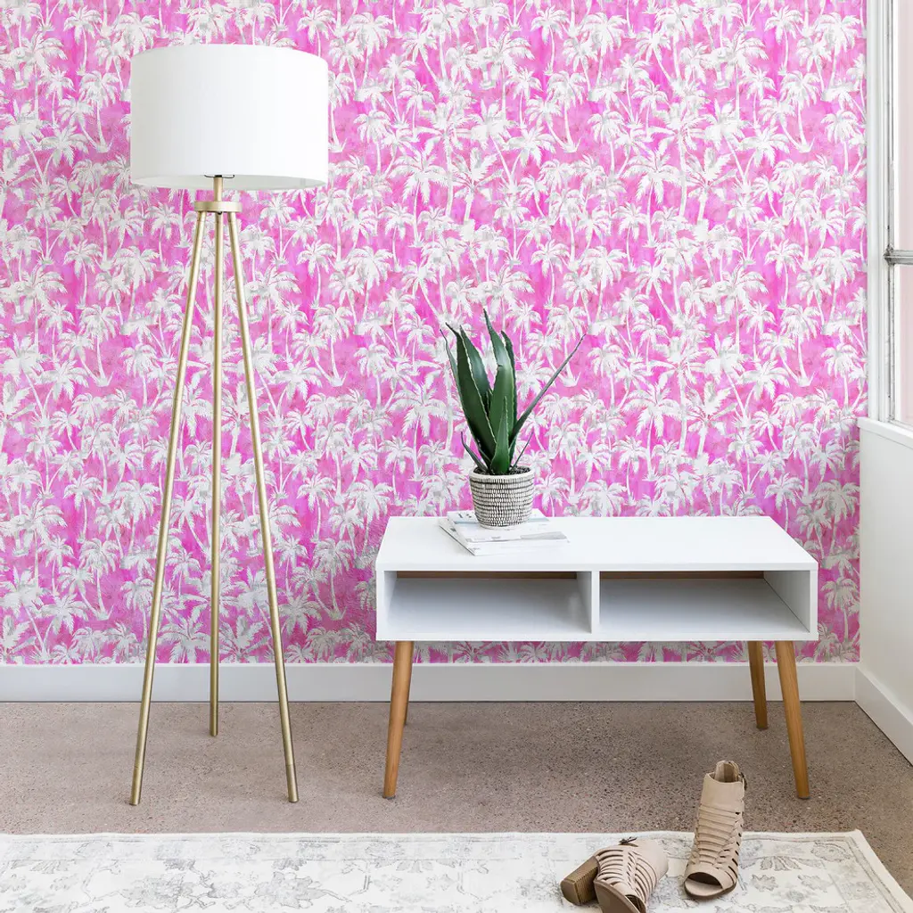 Deny Designs Schatzi Brown Maui Palm 2 Pink Wallpaper, Pink, 2'x4'