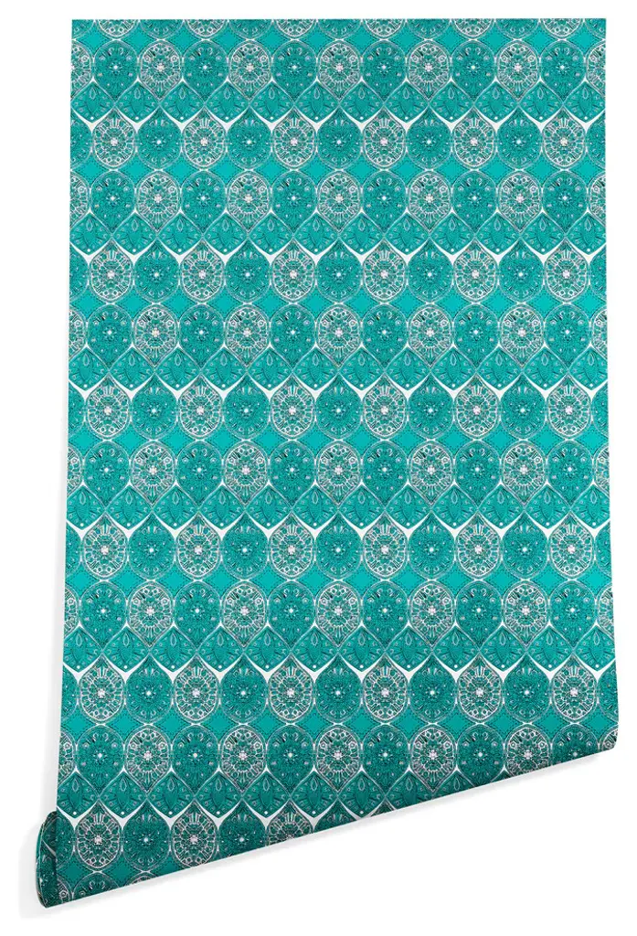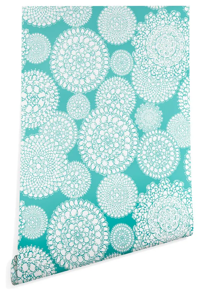 Deny Designs Schatzi Brown Reeve Pattern Aqua Wallpaper, Blue, 2'x10'