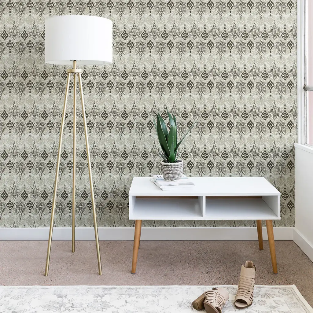 Deny Designs Sharon Turner Lotus Block Wallpaper, Gray, 2'x4'