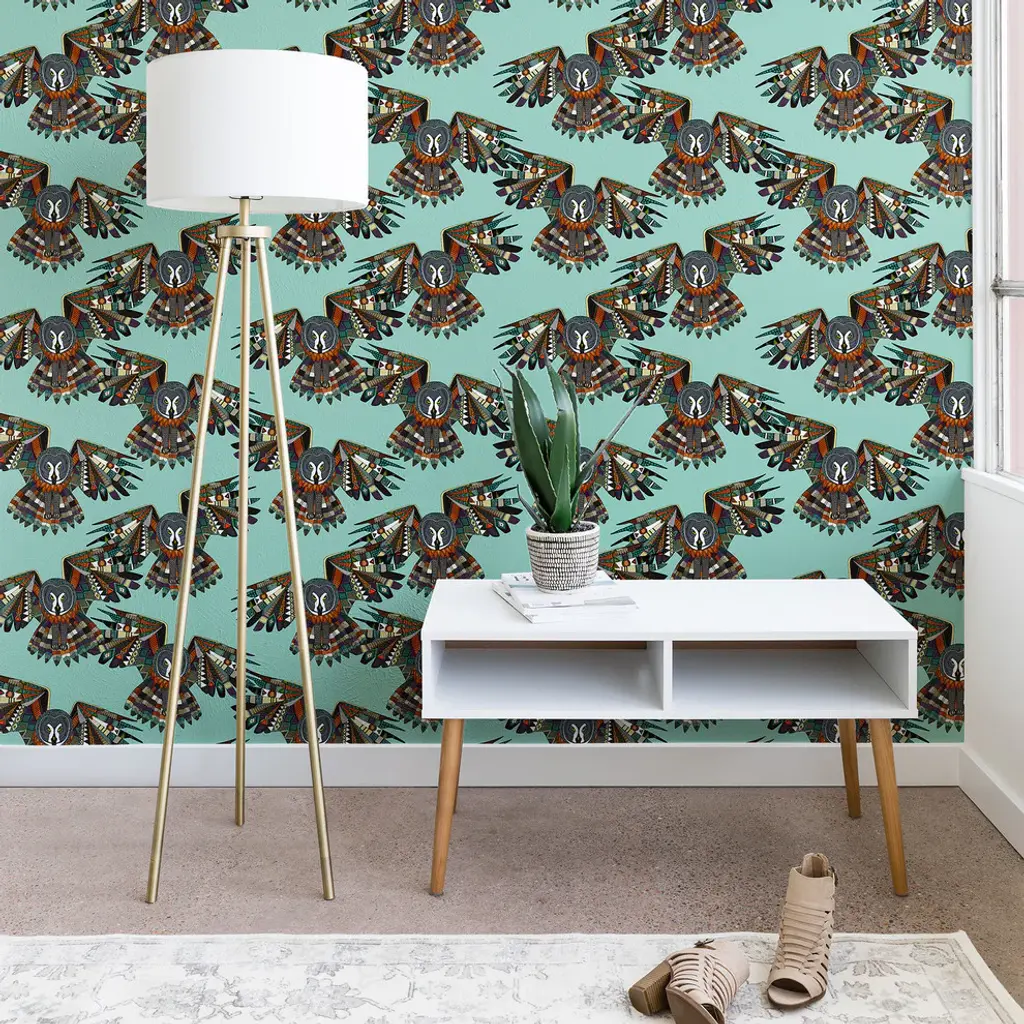 Deny Designs Sharon Turner Night Owl Mint Wallpaper, Blue, 2'x4'