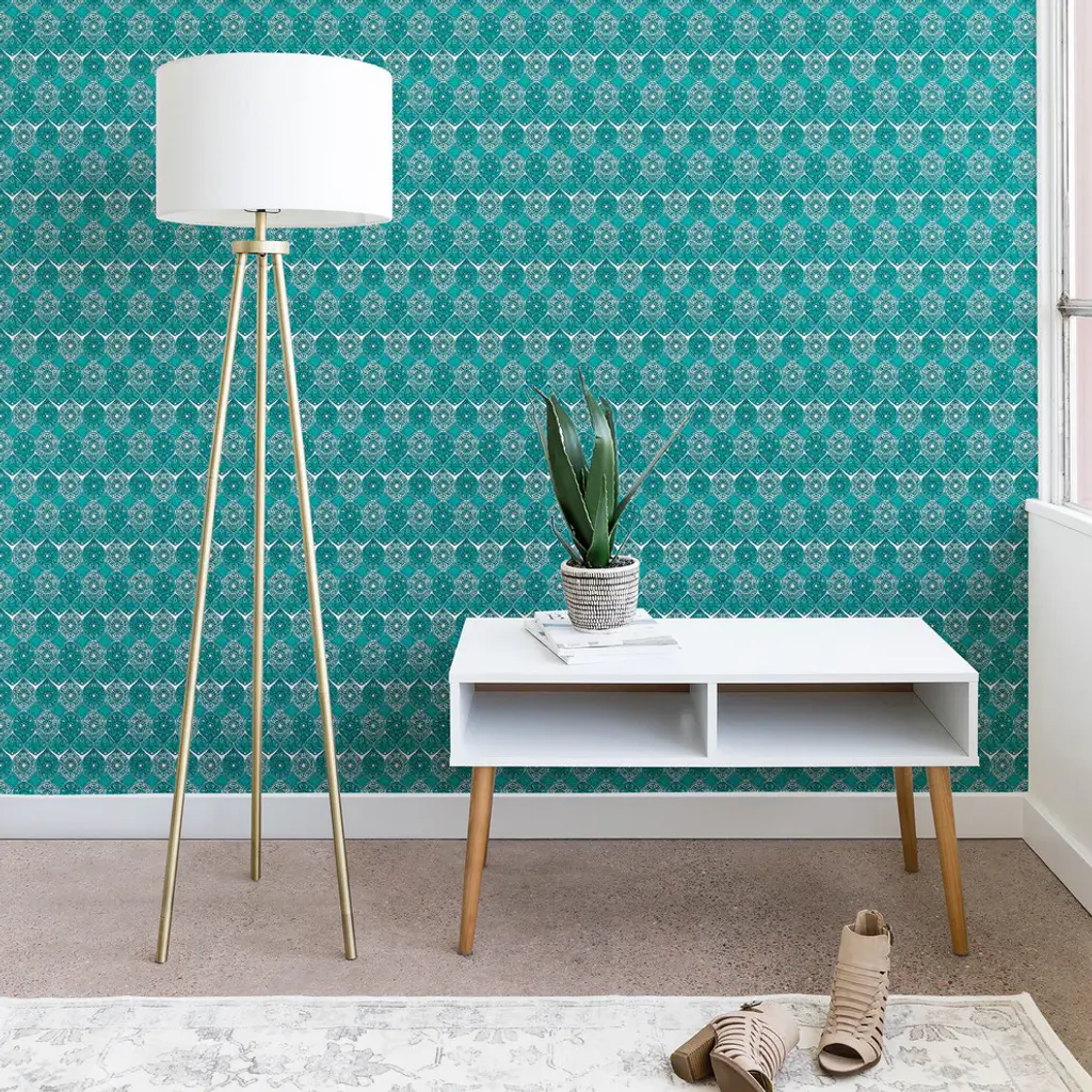 Deny Designs Sharon Turner Saffreya Turquoise Wallpaper, Blue, 2'x4'