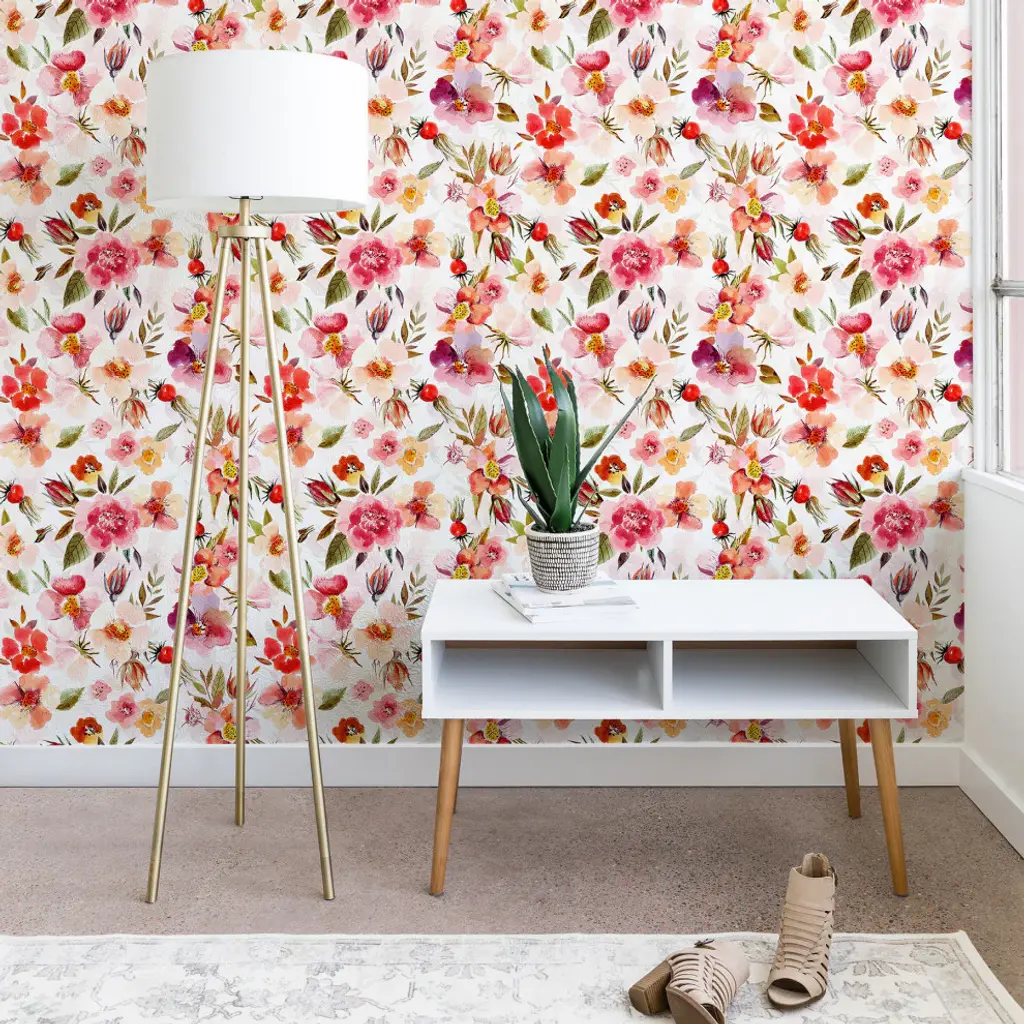 Deny Designs Utart Hygge Watercolor Midsummer Dogroses Pattern Wallpaper