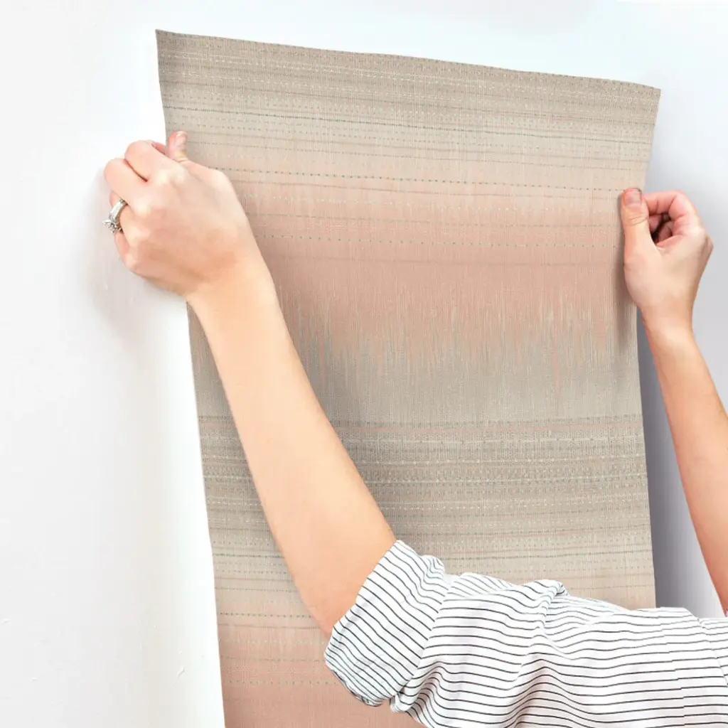 The ombre and flame stitch of pattern Desert Textile is a textural recreation of an indigenous tribal weave. This Desert Textile Wallpaper measures approximately 27 inches wide by 27 feet long, covering About 60.8 square feet per roll. Printed on an unpasted paper and created with the highest quality of craftsmanship, this wallpaper is easy to install; simply apply paste to paper and hang. Unpasted heavy weight paper material; 20.5-in repeat, straight match; Washable and peelable; 27-in by 27-ft long roll; Covers about 60.8 square feet