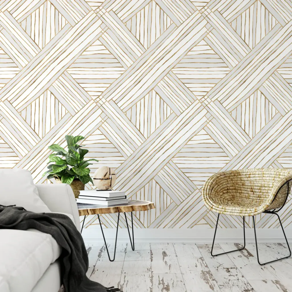 Diamond Stripe Gold Gray Wallpaper, 24"x144"