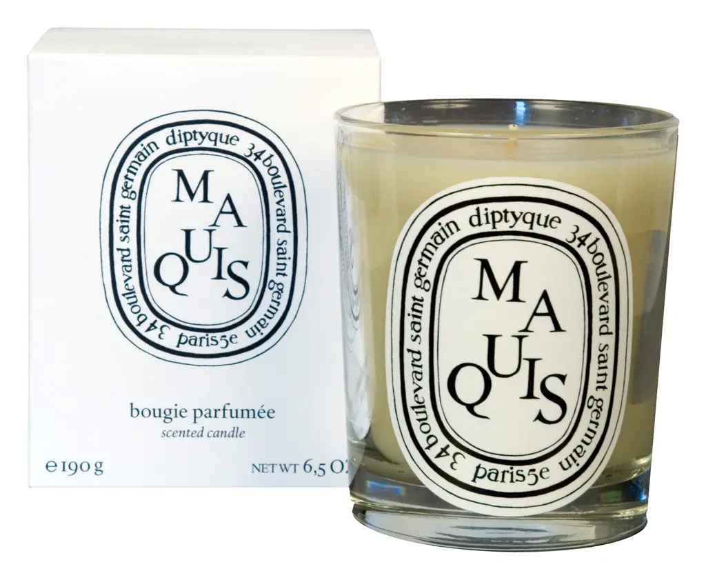 Opened in 1961 by a trio of creative friends, Diptyque began as a small storefront bazaar that showcased the founders' signature printed fabrics and wallpapers. But after just a few years, following the introduction of their fragrances, the Paris-based company had quickly grown into a luxury perfumer that's now loved the world over. Today, the Diptyque Candle Collection pays tribute to the beauty of nature with distinctive, evocative fragrances, which are crafted from carefully chosen raw materials. These natural fragrances are combined with plant-based waxes, custom blended for each candle to complement its singular scent. Poured into handmade clear glass jars, each candle is finished with the company's iconic oval label. The perfect gift or, more indulgently, gift to self, choose from twenty-one enchanting scents. •3" diameter x 3.5"H •6.5 oz. •custom blended waxes to complement each fragrance •natural fragrances •cotton wick •50 - 60 hour burn time •france Scents FEU DE BOIS: warm and sophisticated blend of rare wood essences BAIES: a blend of floral rose and black currant leaves AMBRE: vetiver and patchouli, aniseed, insolent spices, incense, cistus and tonka bean MAQUIS: a mix of cistus shrub essence, patchouli and amber FIGUIER: a blend of green and wood notes with crushed fig leaves GARDENIA: classic floral fragrance, reminiscent of white flowers and jasmine CHOISYA: orange flower with a bitter-sweet scent SANTAL: woody fragrance of sandalwood FEUILLE DE LAVANDE: sweet flowers and refreshing green leaves MENTHE VERTE: extreme freshness with a hint of spice ROSES: garden roses blended with crushed pot pourri petals PATCHOULI: neither completely woody nor completely herbal OUD: woodsy, oriental incense, patchouli and sandalwood LYS: fresh, green fragrance of sap and leaves mixed with sweet and delicate spicy lilies NARGUILE: tobacco leaves with hints of sweet honey and and warm spices TUBEREUSE: a sensuous, heady scent that is strong and flowery BENJOIN: warm, carmelized benzoin resin mixed with notes of woody patchouli and Indian cypriol and dry bark EUCALYPTUS: fresh eucalyptus leaves and bark mixed with notes of bright camphor JASMIN: fresh, intoxicating scent of delicate jasmine blossoms GERANIUM ROSA: sweet-scented blooms and sharp, citrusy leaves of rose geraniums