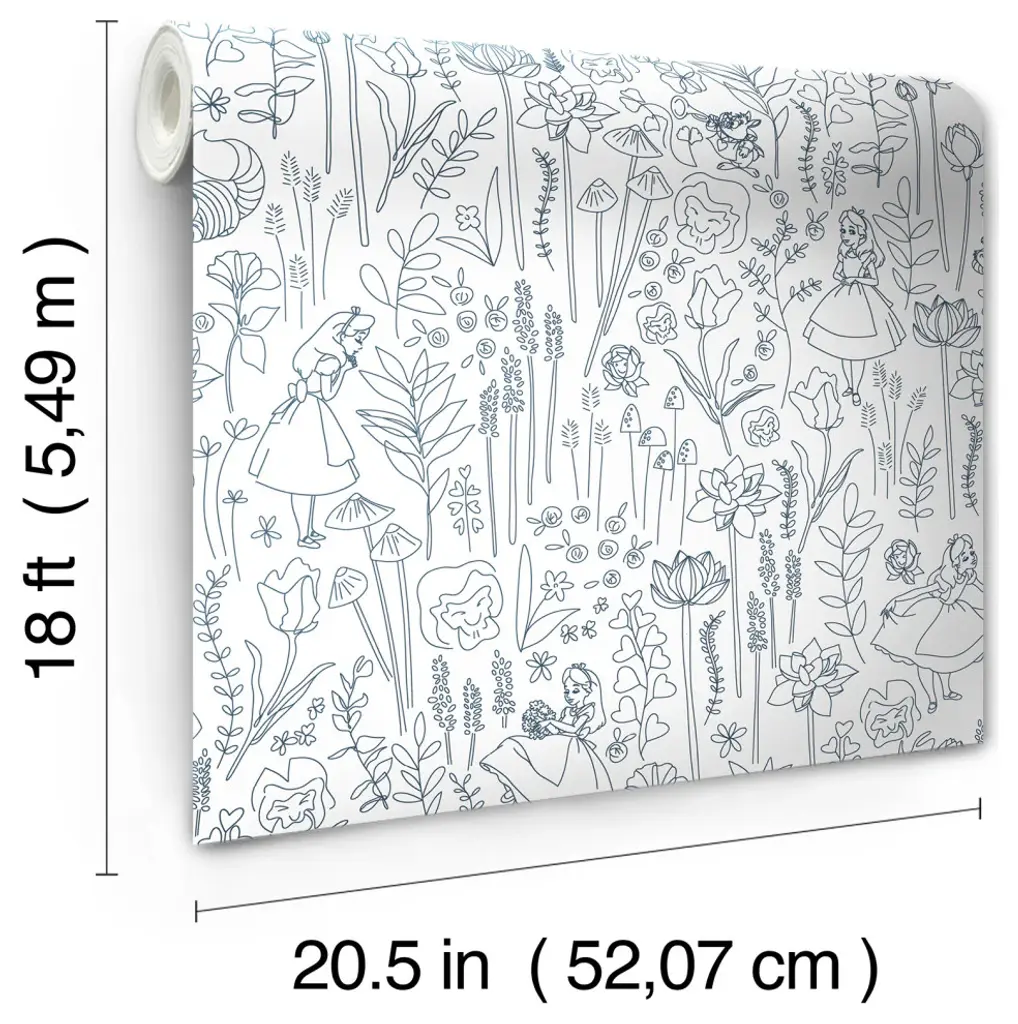 Disney Alice In Wonderland Navy Garden Peel And Stick Wallpaper